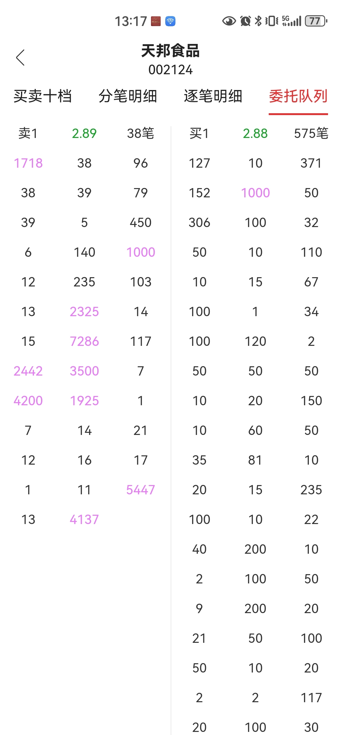 $天邦食品(SZ002124)$ 瞬间压了几万手