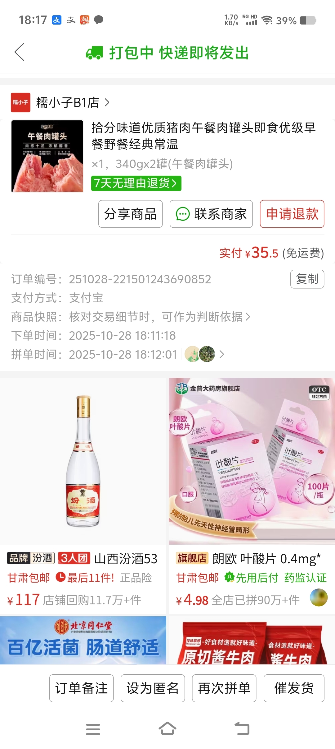 下午刚买这股票进来,立马尝尝天邦食品旗下拾分味道品牌生产的午餐肉,支持公司未来越