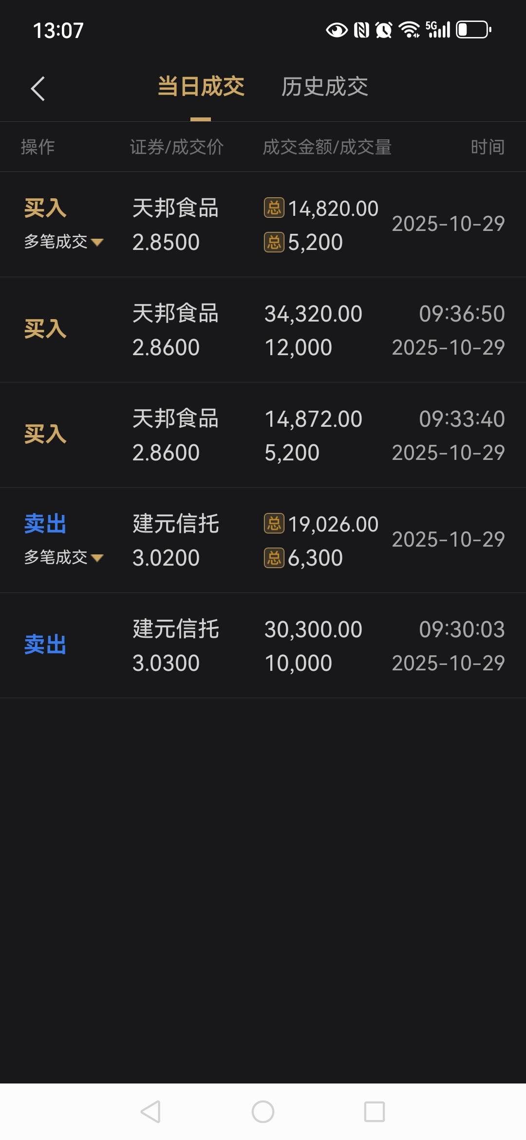 昨天2.89清仓天邦食品换建元信托!今天2.86又回来了!