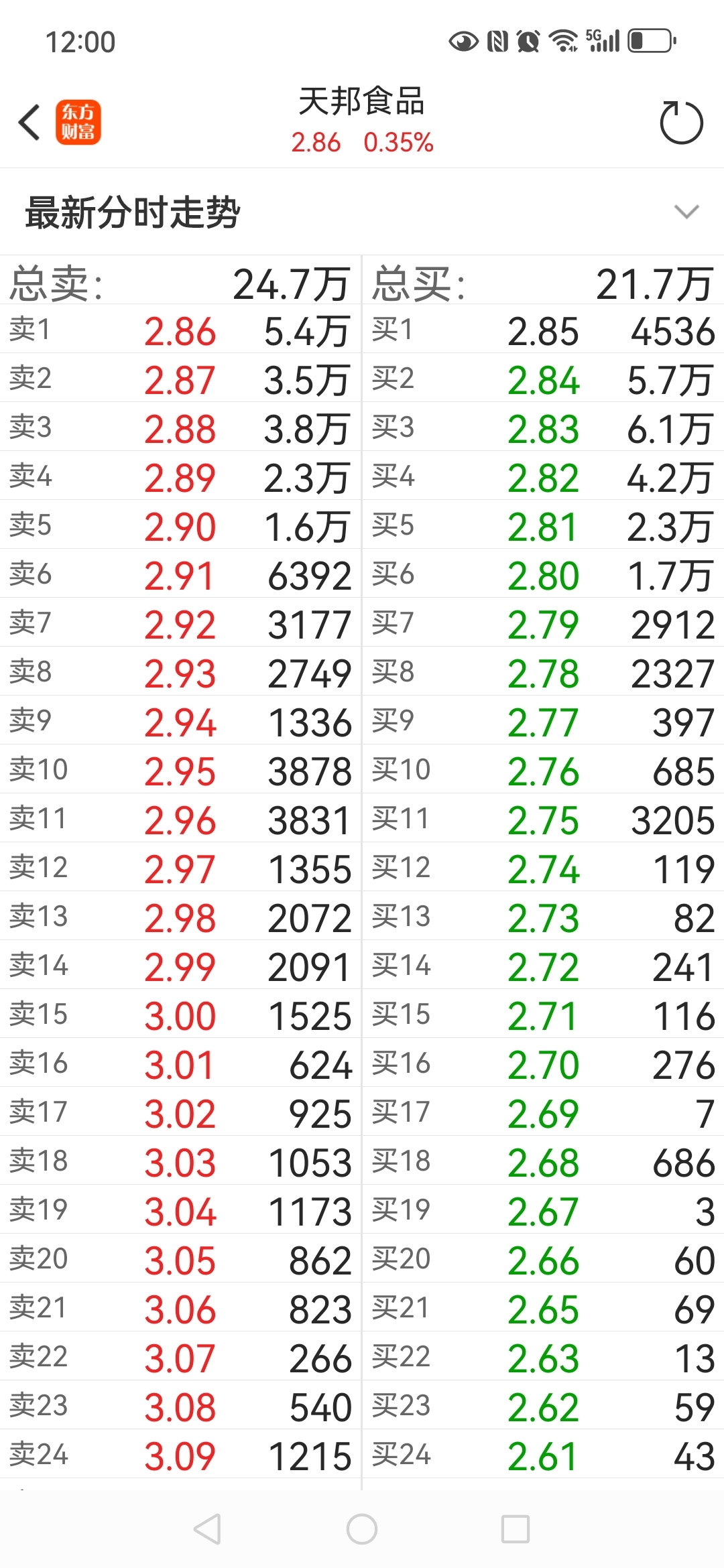 $天邦食品(SZ002124)$ 买卖各20多万手,集中在上下5档,要么砸下来,要么冲上去!向上没有抛压,向下没有支撑,多空双方决斗!!!