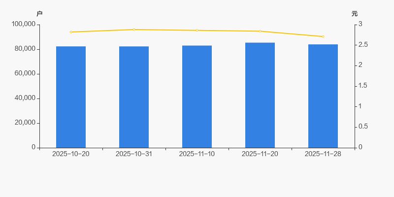 2025年10月20日至今,公司股东户数有所增长,区间涨幅为1.97%。2025年10月20日至2025年11月28日区间股价下降3.90%。