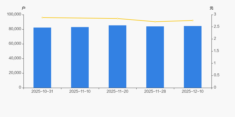 2025年10月31日至今,公司股东户数有所增长,区间涨幅为2.58%。2025年10月31日至2025年12月10日区间股价下降4.17%。