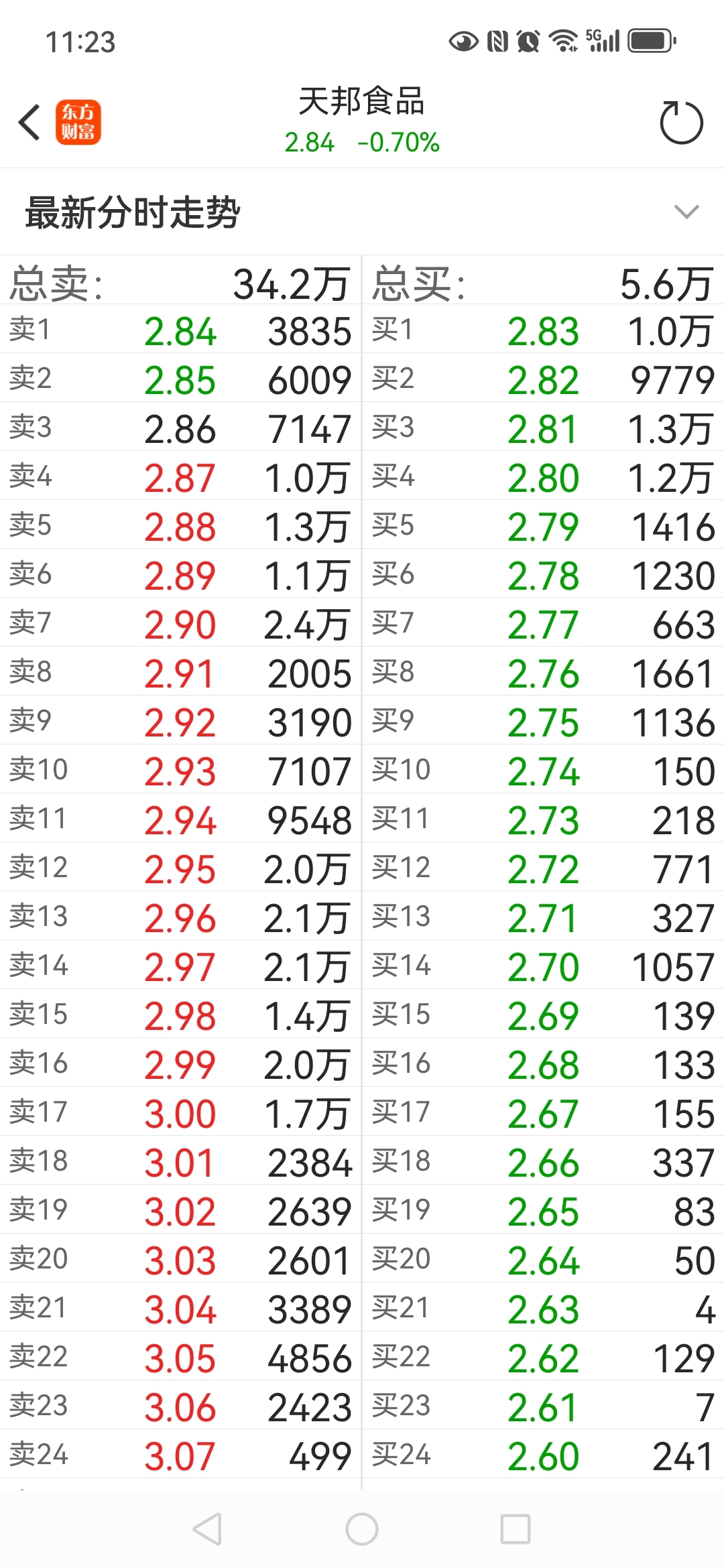 $天邦食品(SZ002124)$ 34万手卖单,买盘不足零头!!!早盘追高的热资埋了一个亿!
