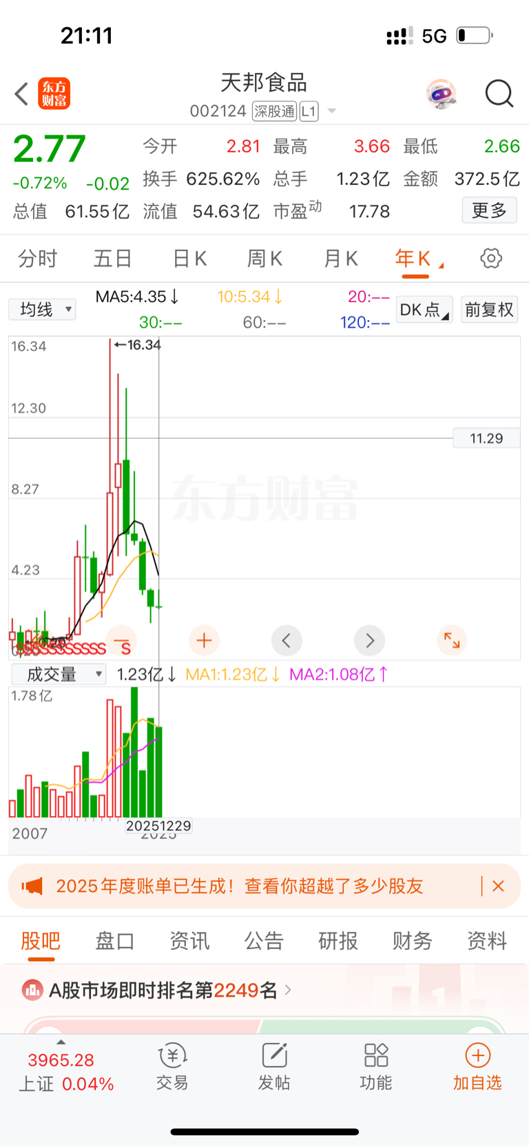 $天邦食品(SZ002124)$ 天邦食品管理层年初承诺的市值管理,就是在大盘涨 30% ,大股东坐庄操纵股价,做空市场,把股价砸下 30%,这样的管理层无耻至极@天邦食品 @妙想
