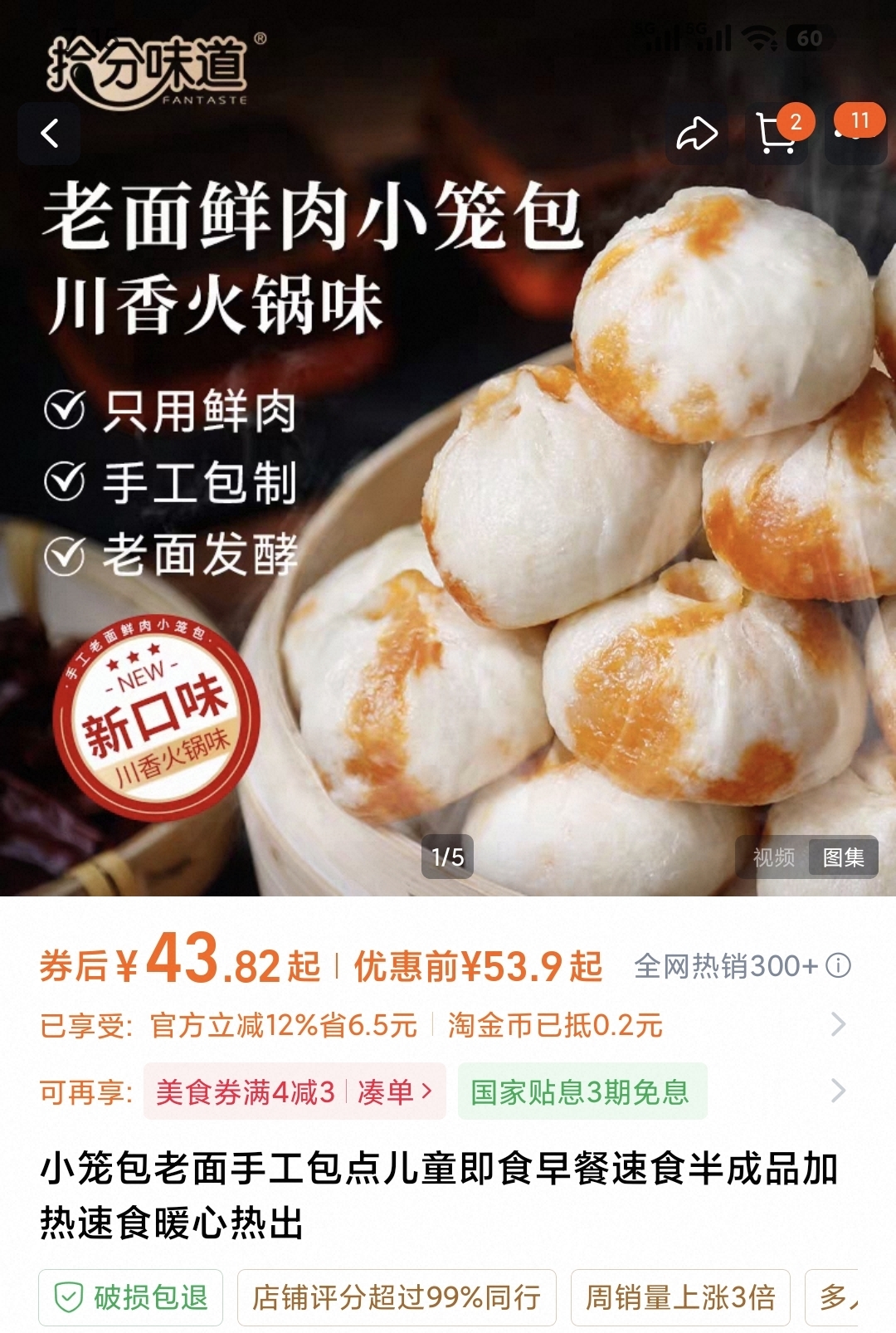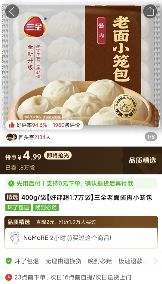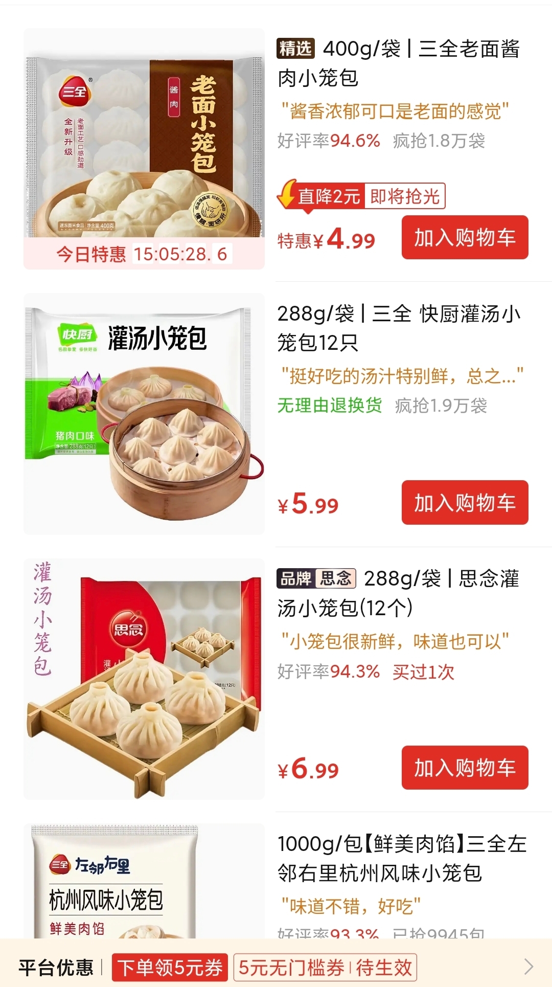 三全小龙笼包4.99元,思念6.99元,拾分味道11元,三全销售50亿,毛利润2