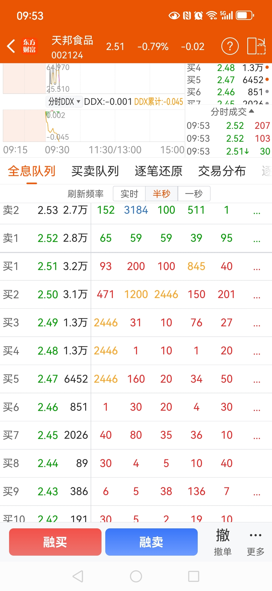 $天邦食品(SZ002124)$ 2446手大户天天挂在下面做t,废了废了!