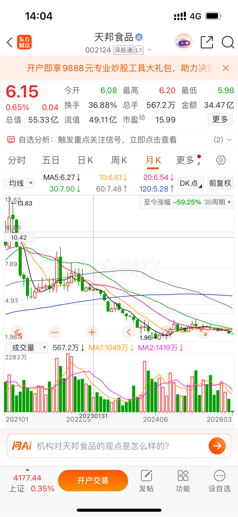 $天邦食品(SZ002124)$ 月线连续下跌 长达 20 多个月,管理层毫无作为,如果这样请你们这些的人员赶紧 Gun dan 吧
