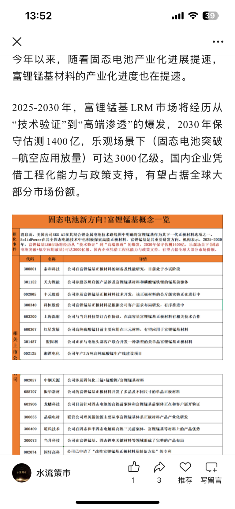 固体电池终极财材料,持续看好不到百亿市值自锰矿全球巨头湘潭国资背景+整合合作湖南