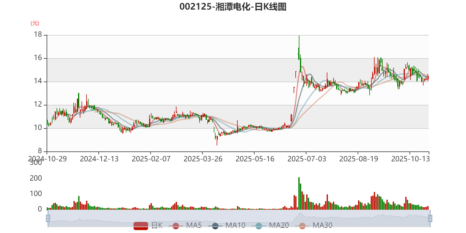 以10月28日收盘价计算,湘潭电化目前市盈率(TTM)约为39.81倍,市净率(LF)约2.94倍,市销率(TTM)约4.7倍。