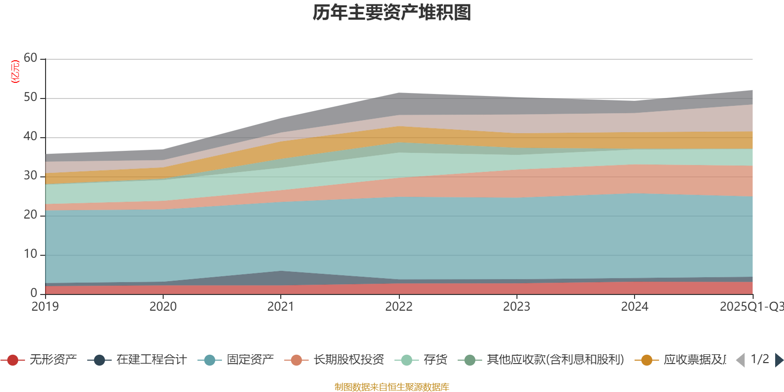 资产重大变化方面,截至2025年三季度末,公司固定资产较上年末减少5.15%,占公司总资产比重下降4.48个百分点;货币资金较上年末增加41.26%,占公司总资产比重上升3.34个百分点;应收款项融资较上年末增加61.74%,占公司总资产比重上升0.97个百分点;在建工程合计较上年末增加39.45%,占公司总资产比重上升0.61个百分点。