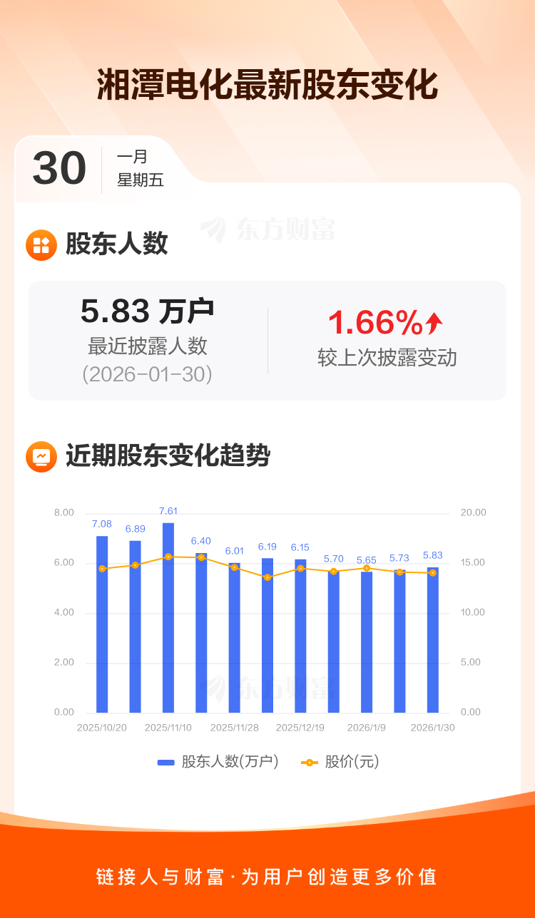 湘潭电化:截至1月30日最新股东户数5.83万户,较上期增加1.66%