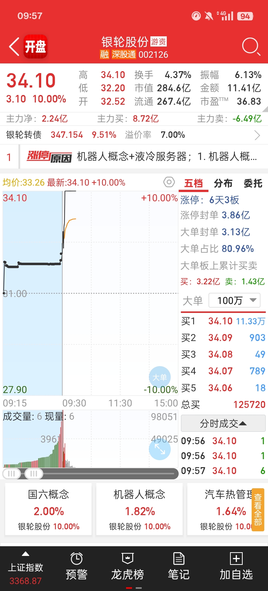 $银轮股份(SZ002126)$ 看看封单大单占比懂了吧,正常是50%,这种80%的说明是主力准备吃独食自己强顶的,盘中还有故意撤单诱空然后再加单洗盘就是不开板,不出意外晚上有消息或者表格了明天又是大高开秒板或者一字板走主升了。