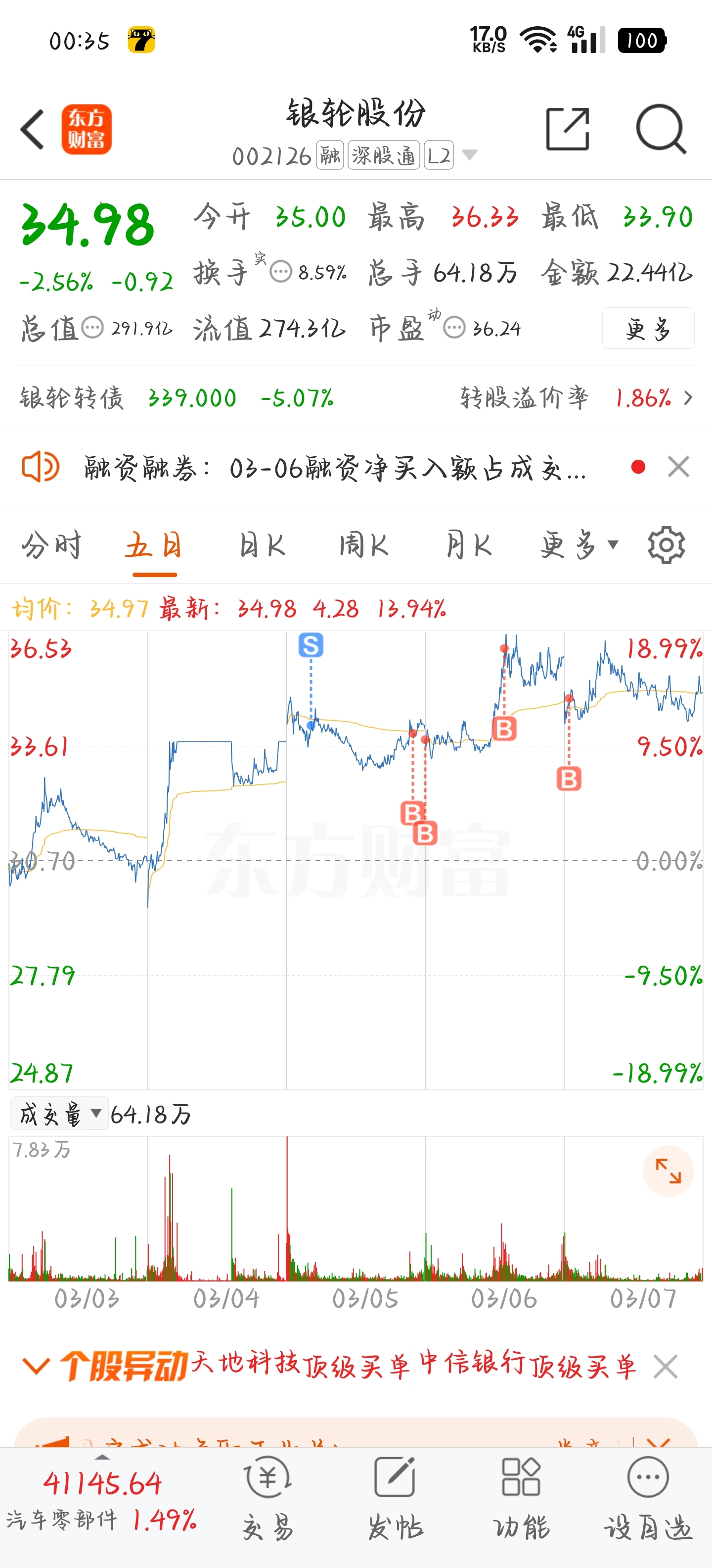 $银轮股份(SZ002126)$ 多的不说,不砸跌停不走。
