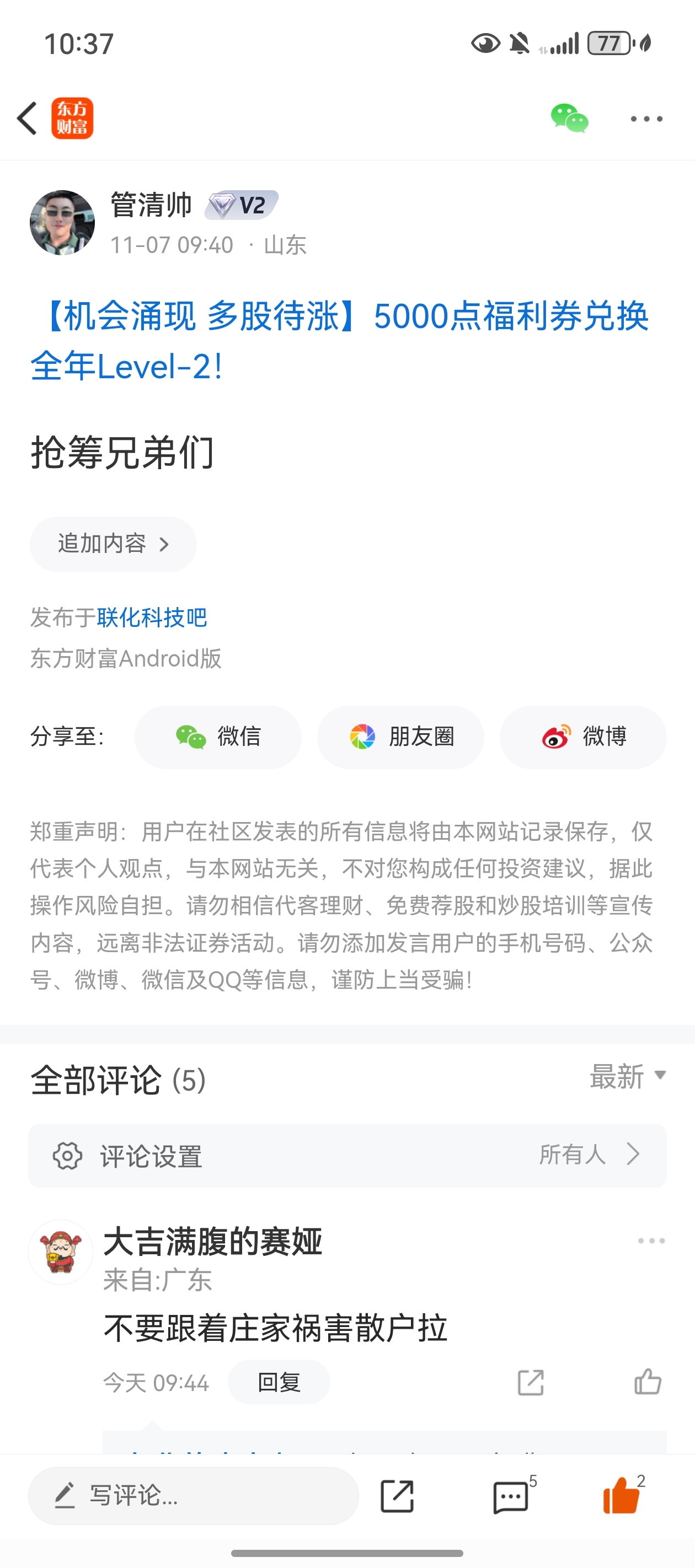 温馨提示: 1.根据《证券法》规定,禁止编造、传播虚假信息或者误导性信息,扰乱证券市场;2.用户在本社区发表的所有资料、言论等仅代表个人观点,与本网站立场无关,不对您构成任何投资建议。用户应基于自己的独立判断,自行决定证券投资并承担相应风险。《东方财富社区管理规定》