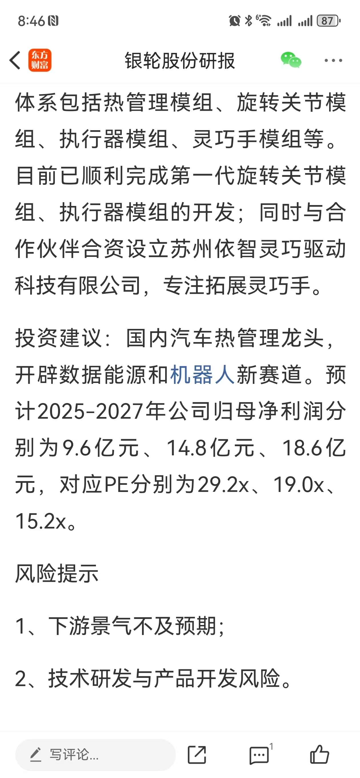 $银轮股份(SZ002126)$ 马上26年了,机构开始布局明年最景气的赛道,液冷明年增长斜率应该是最高的一年,机器人26年也是爆发前夜。加上低空经济,都是国家十五五大力扶持的行业。银轮明年这个业绩增长预期,要爆炸40%利润增速最少,很多券商最新研报50%+增速。目前价格26年18—19倍估值。今年的三花走势就是明年银轮的走势。各路中长线资金已经抢筹。期待机器人赛道拿下更多重量级客户