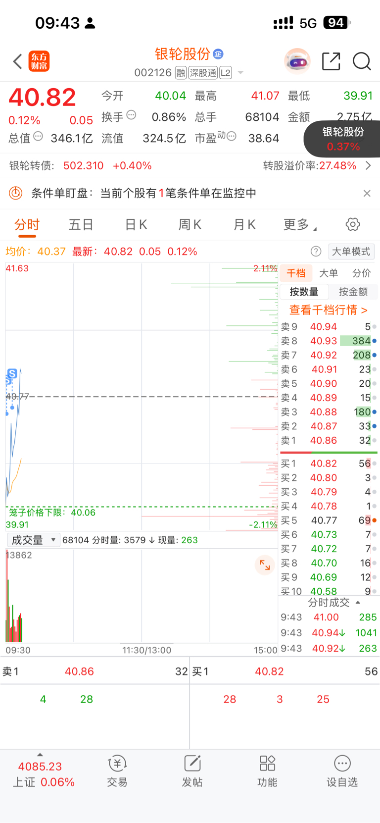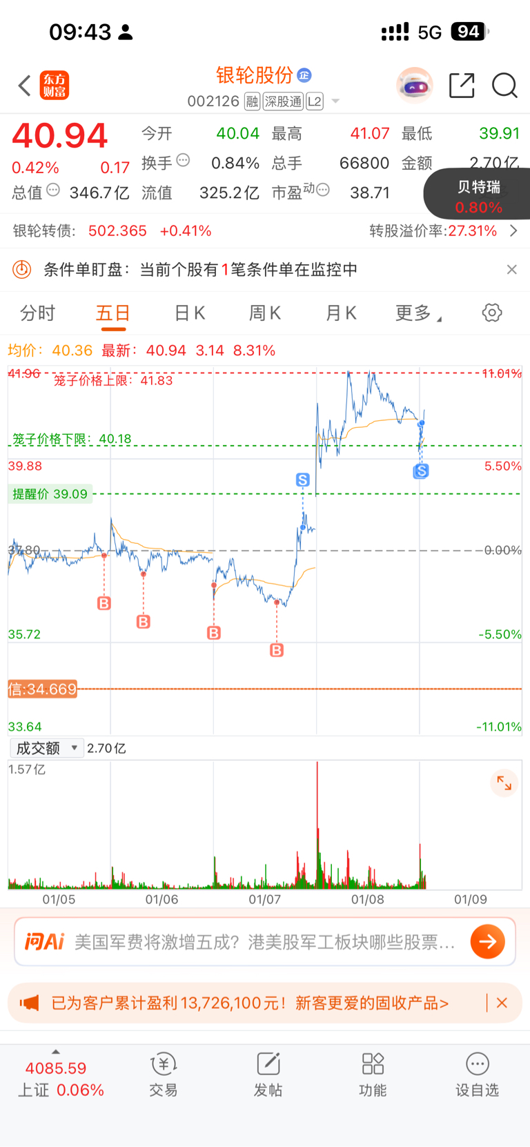 $银轮股份(SZ002126)$ 完了昨天42附近都不卖今天被竞价骗走了部分筹码