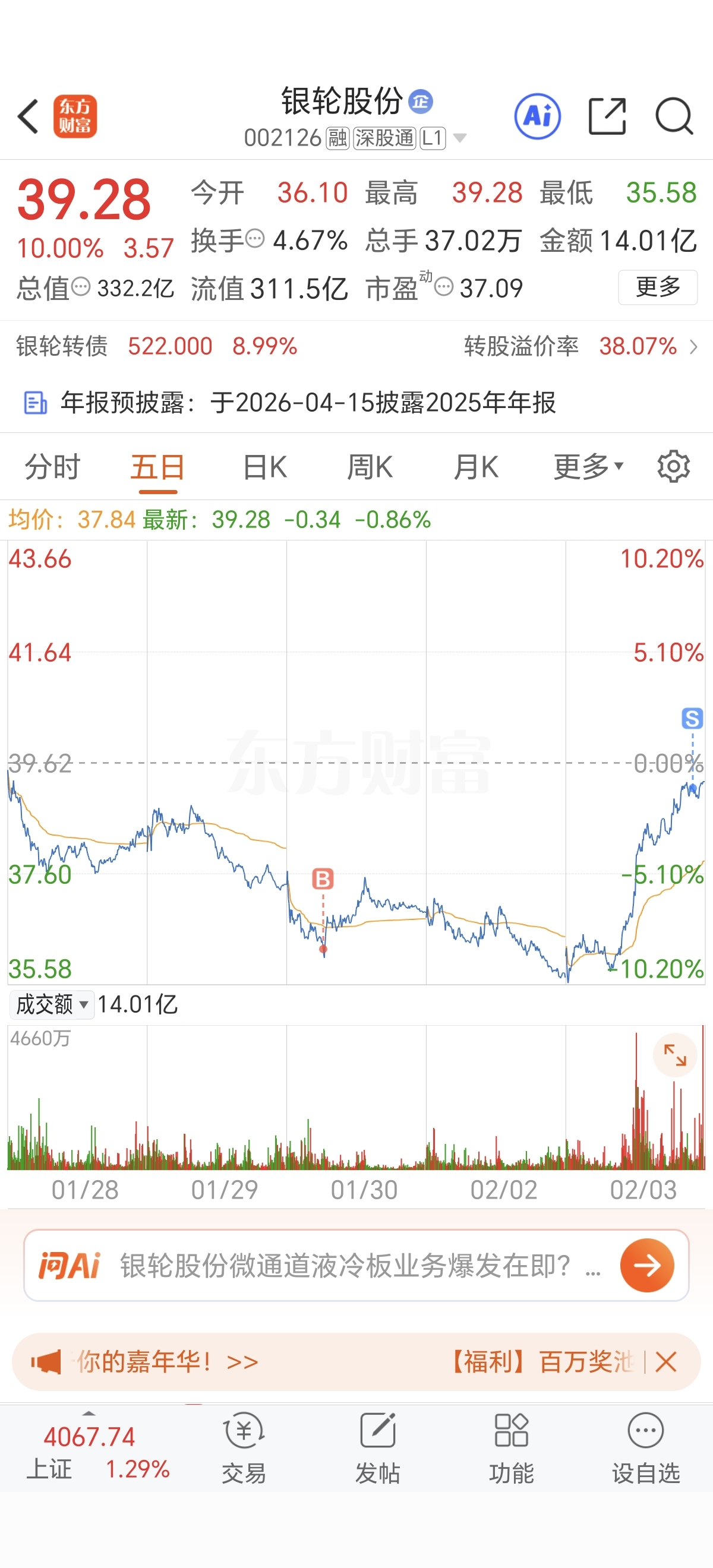 $银轮股份(SZ002126)$ 挣点生活费呀。