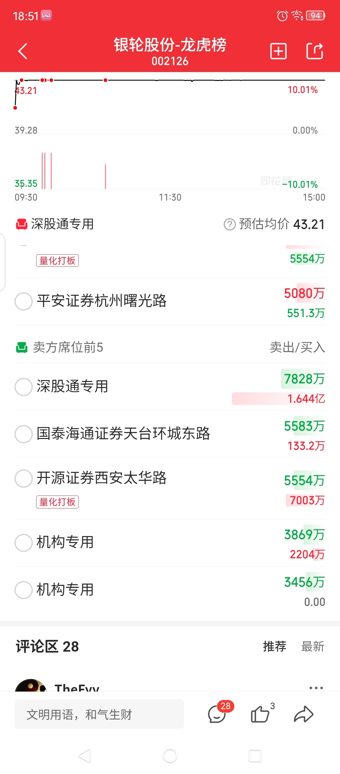 这边没有龙虎榜,同花顺有,买了的自己看一下。一个机构清仓一个机构卖了大部分,三个