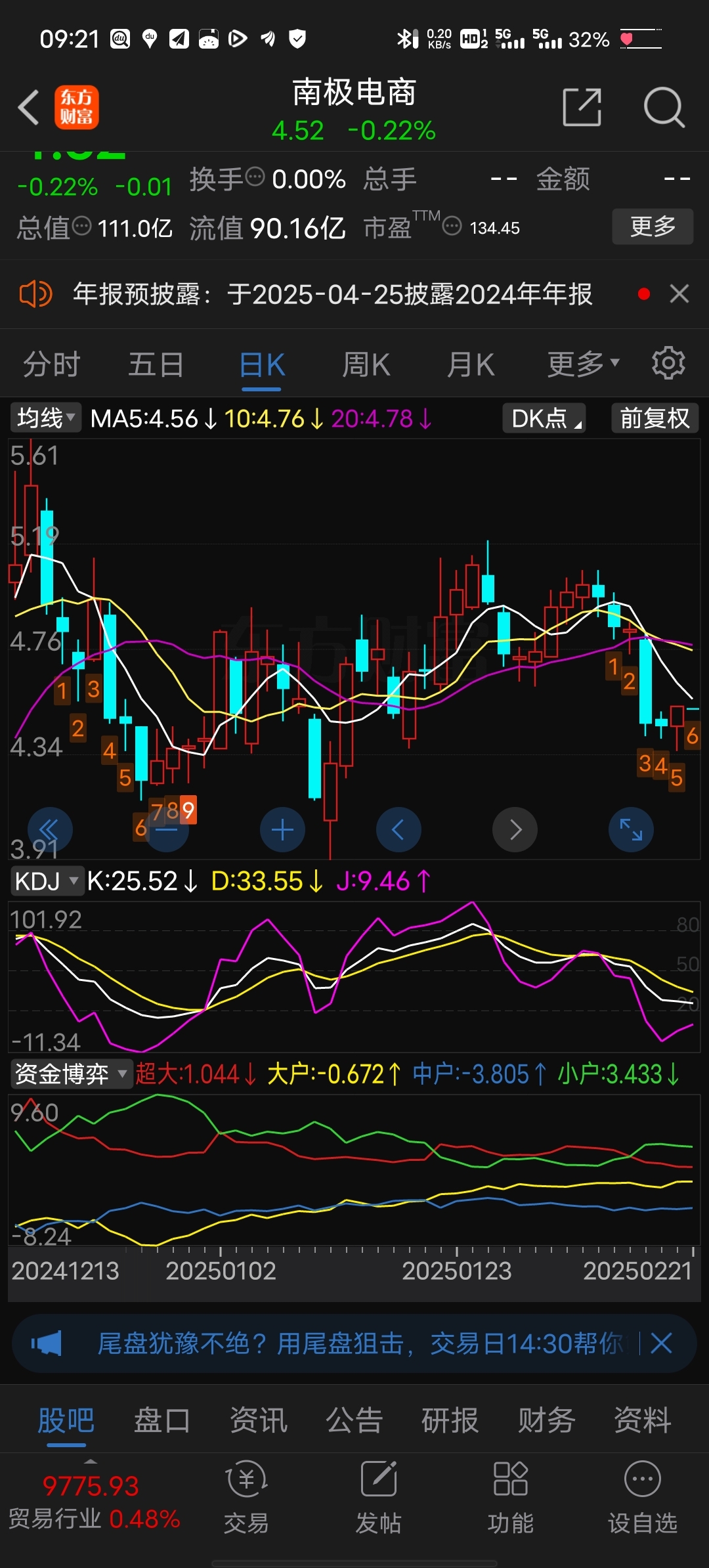 $南极电商(SZ002127)$ 神奇九转,该跑了