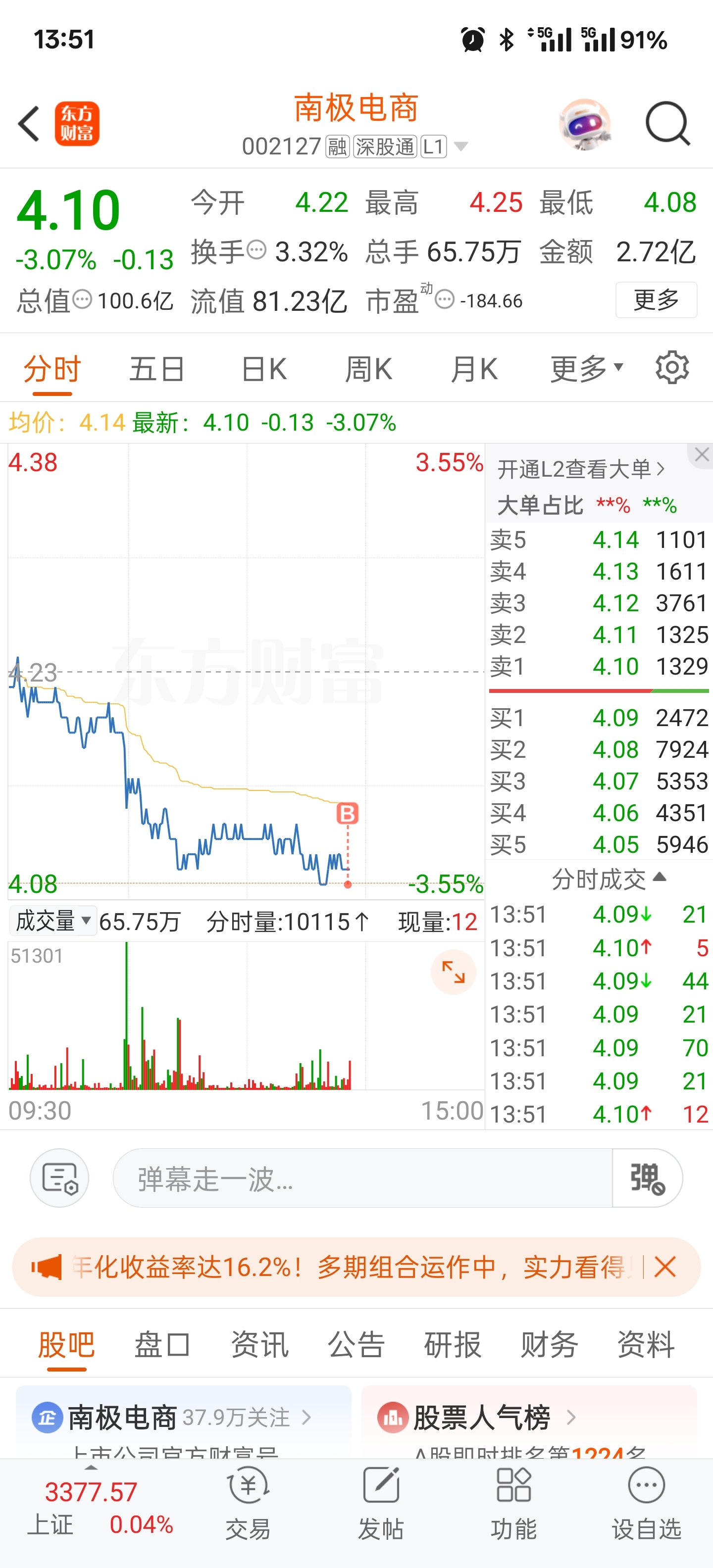 $南极电商(SZ002127)$ 这都买进去了,6666666