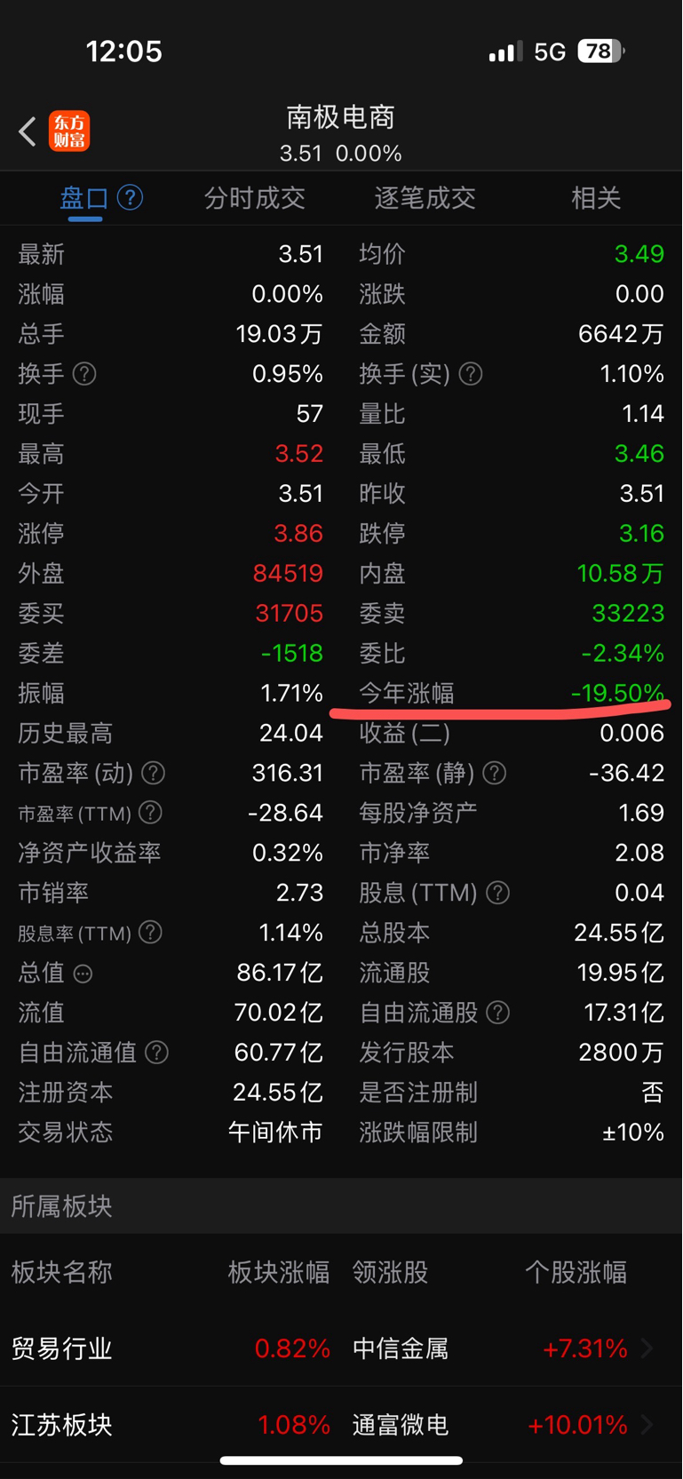 $南极电商(SZ002127)$ 今年跌了20%!牛市啊!