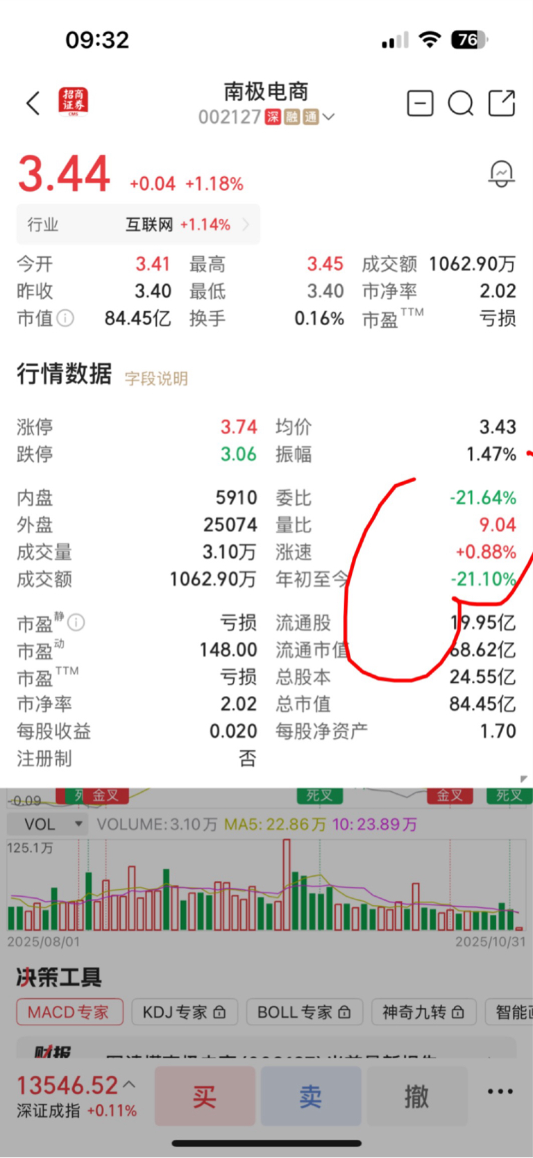 $南极电商(SZ002127)$ 牛市行情,还一年跌21%,足够恶心!