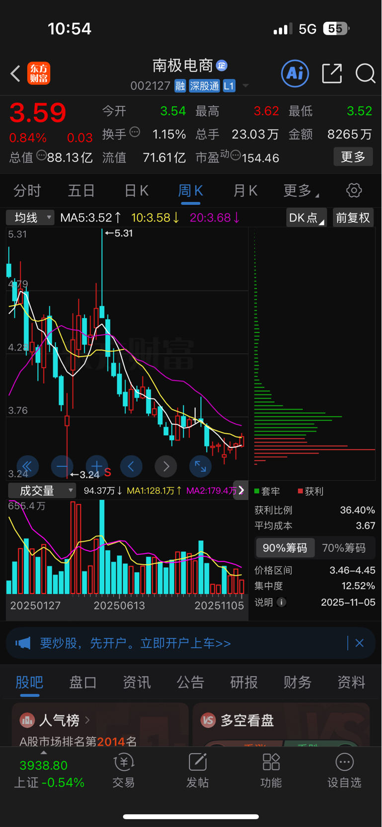 $南极电商(SZ002127)$ 筹码密集区!难搞啊!每一分上涨都难,大家都在T,筹码明显下移了!