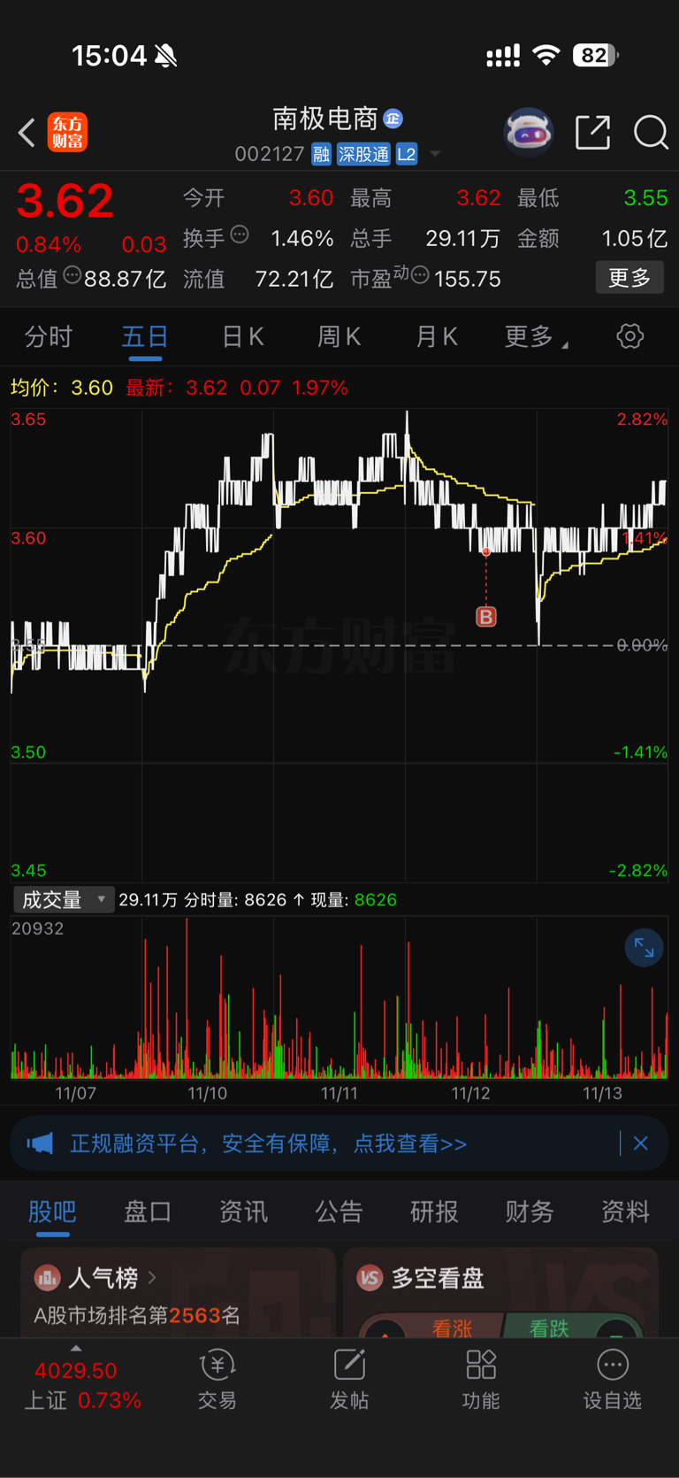 $南极电商(SZ002127)$ 四块见,只赚十个点
