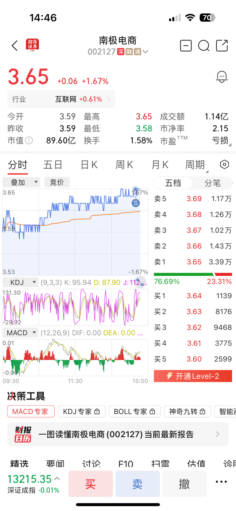 $南极电商(SZ002127)$ 疯狂压单,祝留下的发财!
