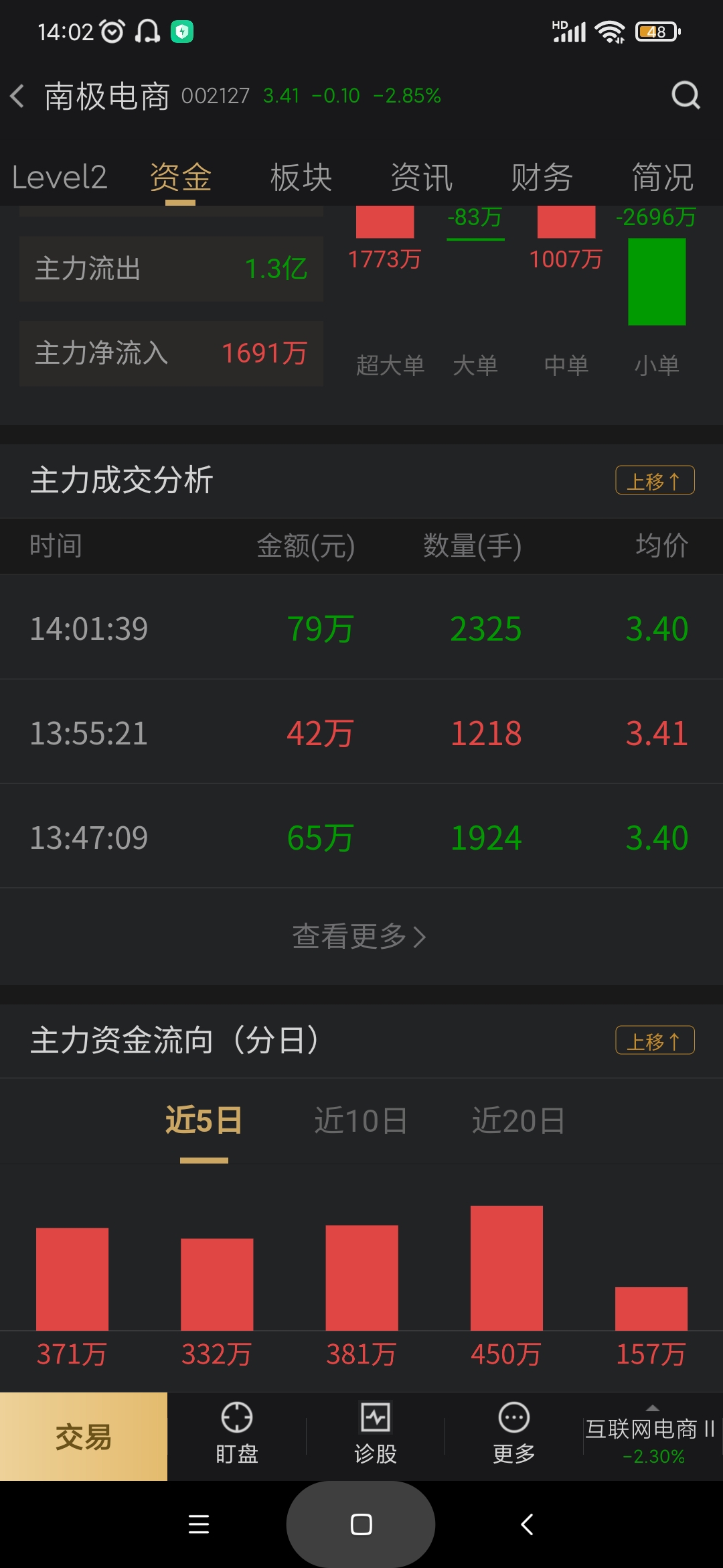 主力连续5日净流入1690万,今日主力继续净买入453万!再加仓20000手!明