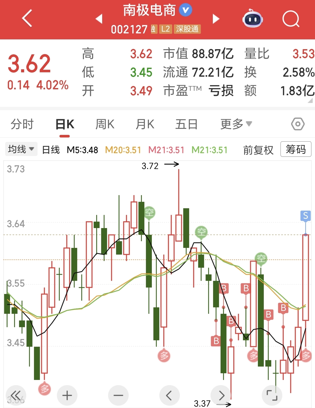 $南极电商(SZ002127)$ 卖飞了!