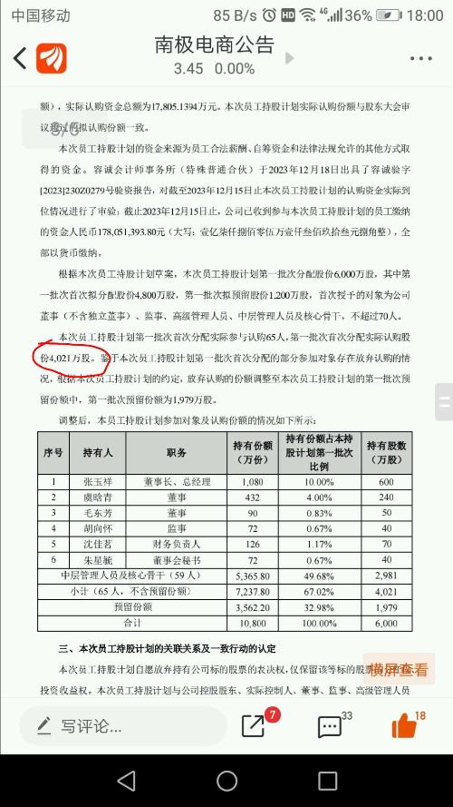 这次员工解禁4021万乘百分之30,也就是1206.3万股,周一开始可以出售的,