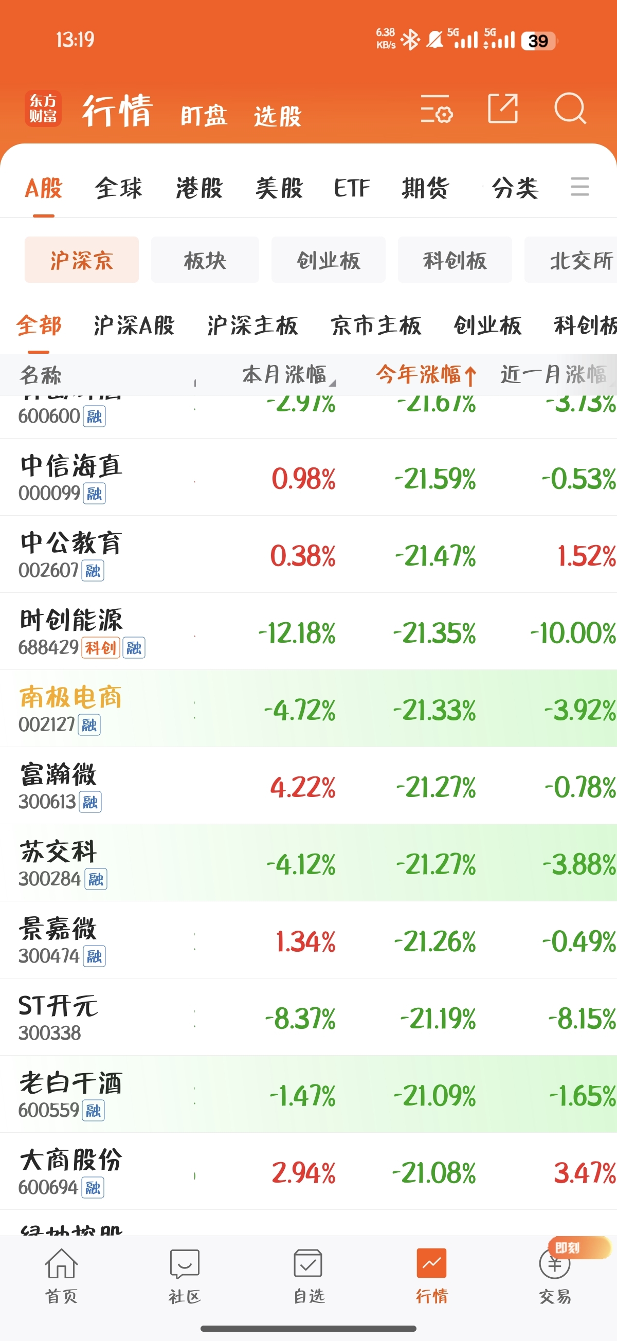 $南极电商(SZ002127)$ 涨幅倒数第一,和ST差不多,排着退。