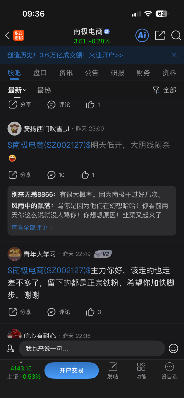 温馨提示: 1.根据《证券法》规定,禁止编造、传播虚假信息或者误导性信息,扰乱证券市场;2.用户在本社区发表的所有资料、言论等仅代表个人观点,与本网站立场无关,不对您构成任何投资建议。用户应基于自己的独立判断,自行决定证券投资并承担相应风险。《东方财富社区管理规定》