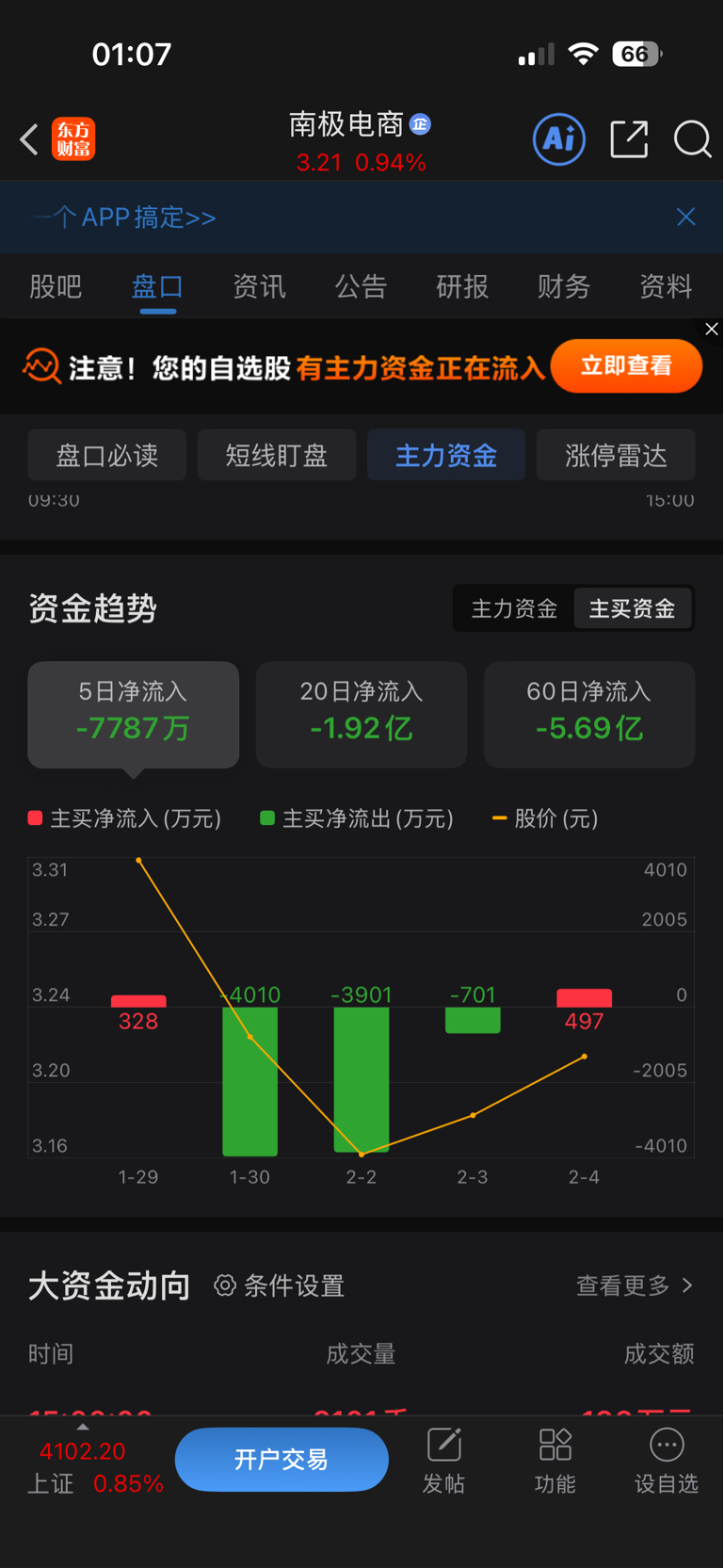 $南极电商(SZ002127)$ 主买资金要已经跑路!难怪阴跌不止!