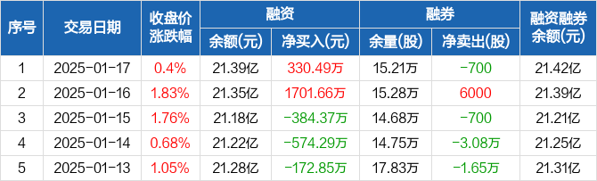 电投能源:融资净买入330.49万元,融资余额21.39亿元(01-17)