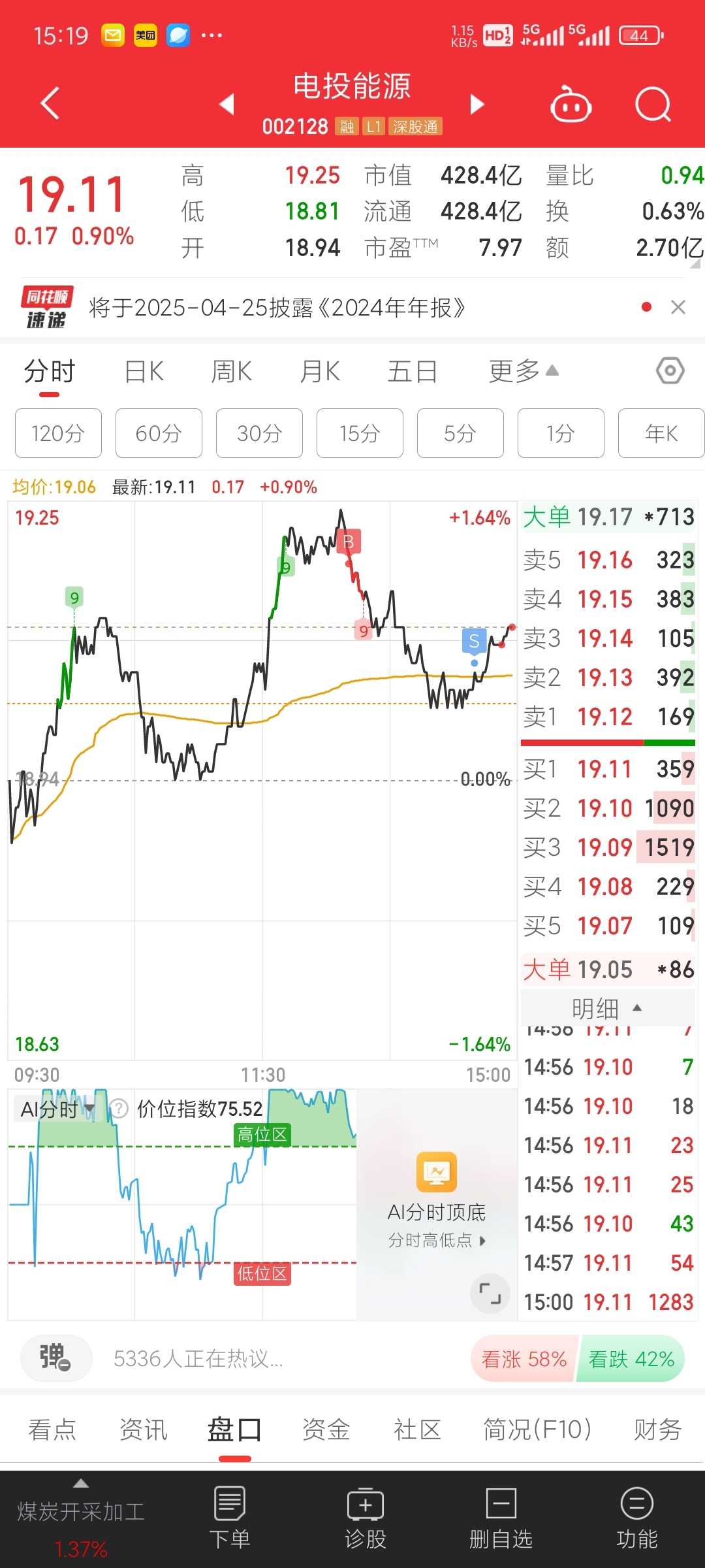 $电投能源(SZ002128)$ 哭了,忙活一天做了个倒T