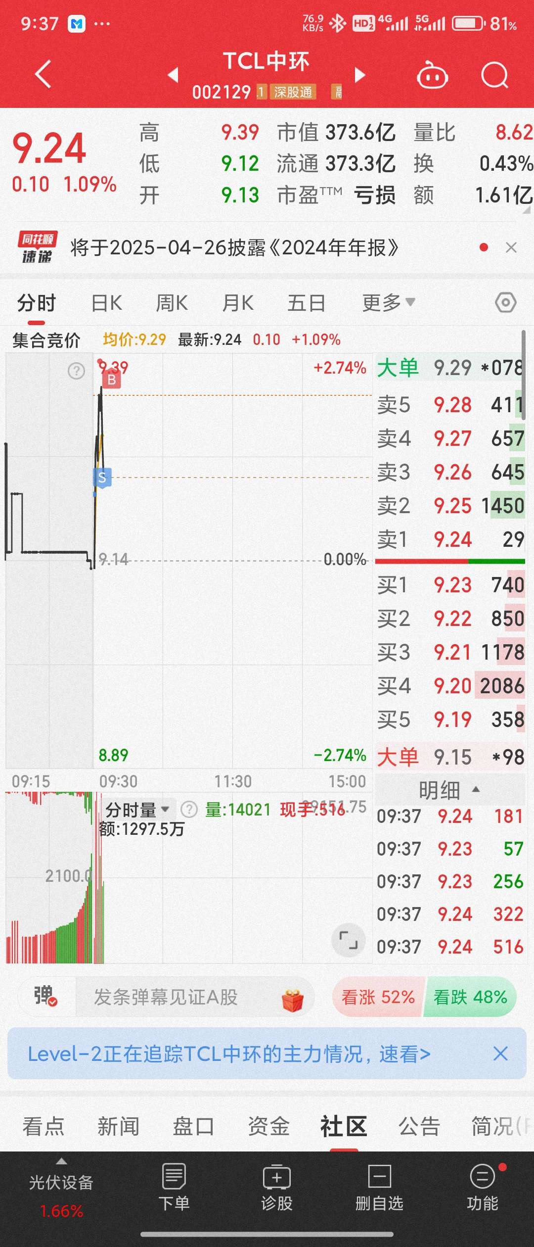 $TCL中环(SZ002129)$ ,卖点成买了,全仓挂山顶了