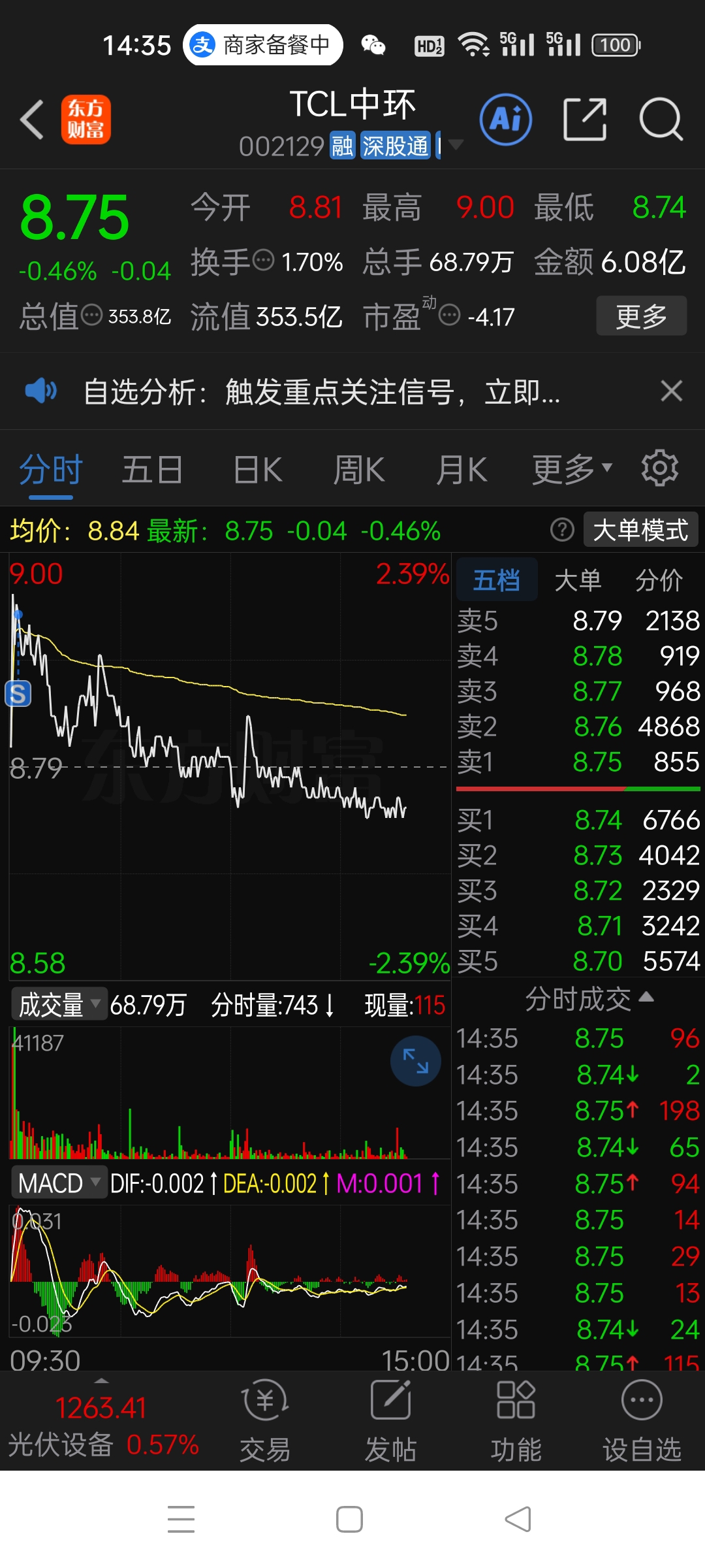 $TCL中环(SZ002129)$ 今天成功逃顶,买入存储芯片了