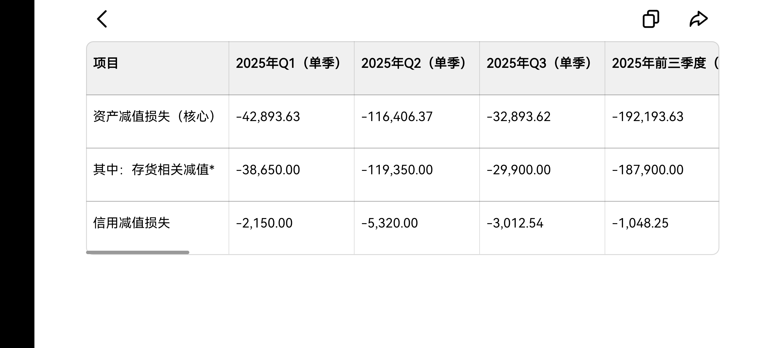 根据TCL中环(002129)已公开的财务报告和行业分析,其2025年三季度业绩并未出现大规模的存货减值转回。这背后的财务逻辑和管理层可能的战略考量,可以通过以下分析来理解。 三季度的存货减值为何未见转回从财务数据上看,TCL中环在三季度确实没有进行大规模的存货减值转回,这主要基于以下几点:· 资产减值总额上升:根据公司公告,2025年上半年计提的资产减值损失约为15.93亿元,而前三季度累计的资产减值损失已增至约19亿元。资产减值总额在增加,本身就降低了三季度存在大规模转回的可能性。· 存货减值仅是部分因素:仔细分析中报数据,上半年15.93亿元的资产减值中,存货跌价损失和合同履约成本减值损失占据了绝大部分,为15.88亿元。这表明存货减值确实是资产减值的主要来源,但其在三季度的变动并未扭转整体资产减值的增长趋势。· 行业回暖存在滞后性:尽管三季度硅料价格出现反弹,但TCL中环的主要产品是硅片和组件,而非硅料。硅料价格的上涨传导到硅片、组件等中下游环节需要时间,且中环自身硅片业务的毛利率在三季度仍为负值(约-6%),说明其核心产品的盈利压力依然存在,尚未达到需要转回存货减值的条件。 管理层可能作何考量在行业出现积极信号的情况下,管理层选择谨慎的会计处理而非激进地转回减值,可能出于以下战略考虑:· 夯实资产,轻装上阵:在经历行业深度调整后,管理层可能希望利用周期底部,一次性充分暴露和消化历史包袱。审慎的减值政策可以让资产负债表更扎实,为后续行业复苏时业绩的轻装上阵打下基础。· 储备“业绩弹药”:存货减值损失在后期如果转回,会直接冲减当期的“资产减值损失”科目,从而增加利润。因此,这部分已计提的减值可以视为公司储备的 “业绩蓄水池” 。管理层可能选择在未来某个关键季度(例如实现扭亏为盈的拐点)或全年业绩中再进行转回,从而交出更亮眼的报表。· 现金流优于账面利润:面对行业困境,管理层的核心任务之一是保障经营安全。财报显示,TCL中环在三季度实现了11亿元的强劲经营性现金流。这表明管理层的工作重心在于实际的运营改善和现金回收,而非短期内美化账面利润。 未来的业绩看点综合来看,TCL中环三季度的经营已显现出积极的改善迹象,后续表现值得关注:· 业绩趋势向好:公司三季度亏损额大幅收窄超过40%,同时经营性现金流显著改善,表明最坏的时期可能正在过去。· 技术转型是关键:公司正全力向BC(背接触)电池技术转型,三季度BC组件出货量占比已提升至约30%,且该业务已实现小幅盈利。这将是其摆脱同质化竞争、提升盈利能力的关键。