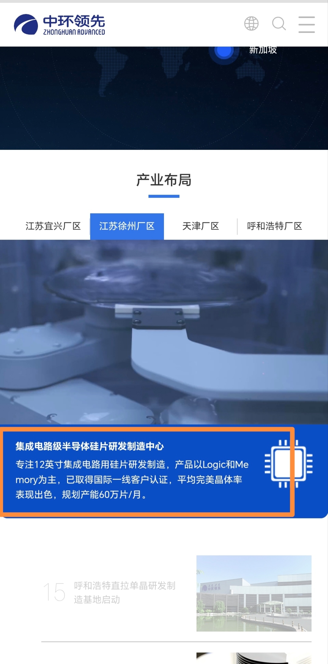 官网实锤!中环领先徐州,12寸硅片,专为存储芯片生产的!