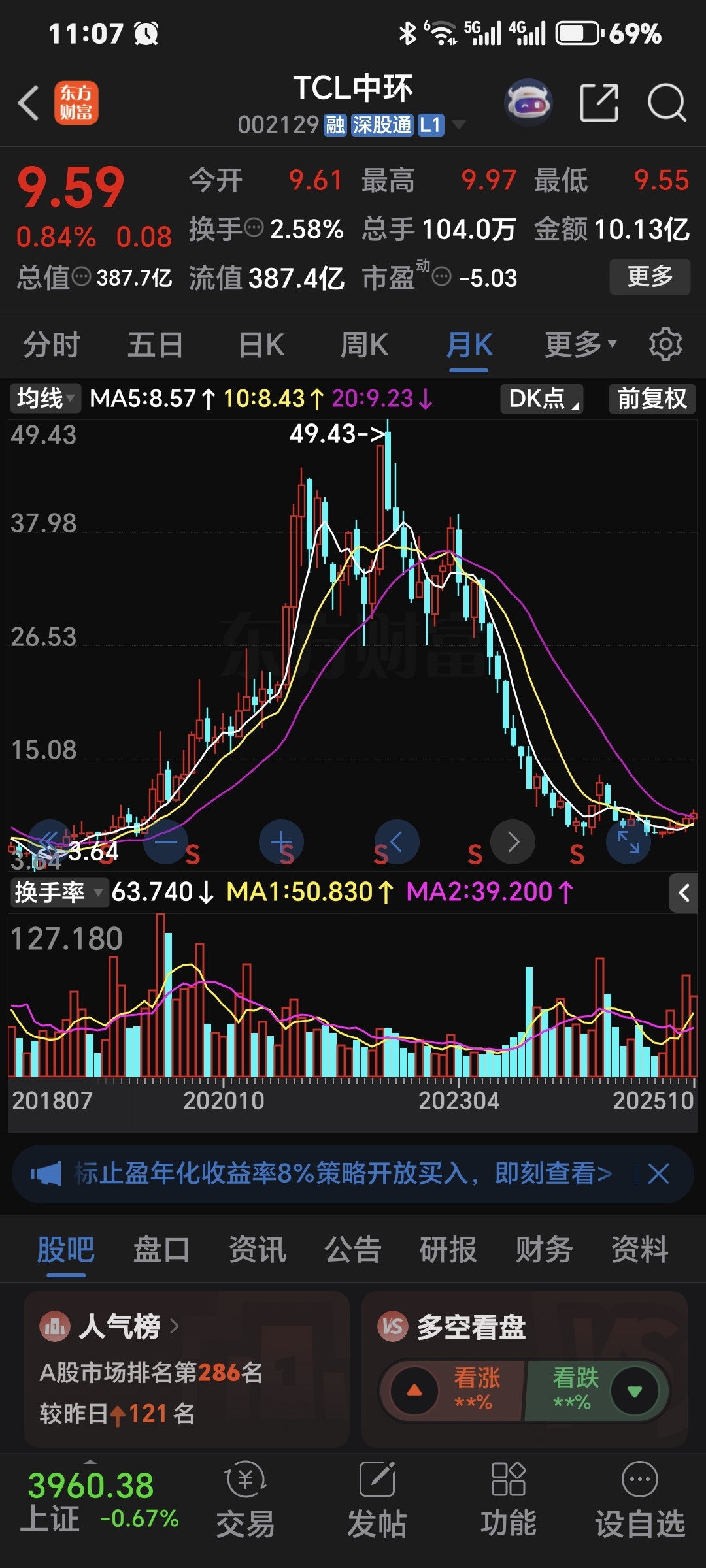 $TCL中环(SZ002129)$ 看到月线都哭晕了,好与坏都通杀,这市场玩不起了。