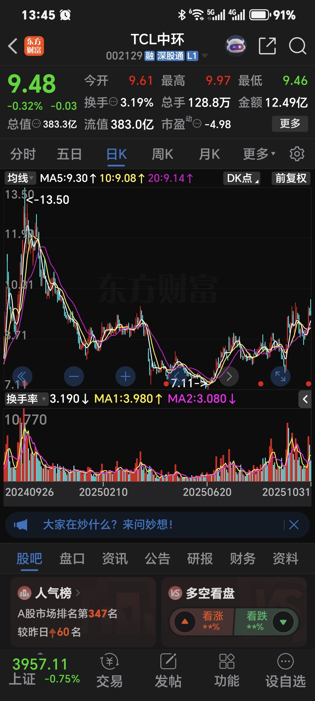 $TCL中环(SZ002129)$  从去年到现在,走的还在低谷爬不起来,反内卷执行后开婚有成效,看环环作妖吧!