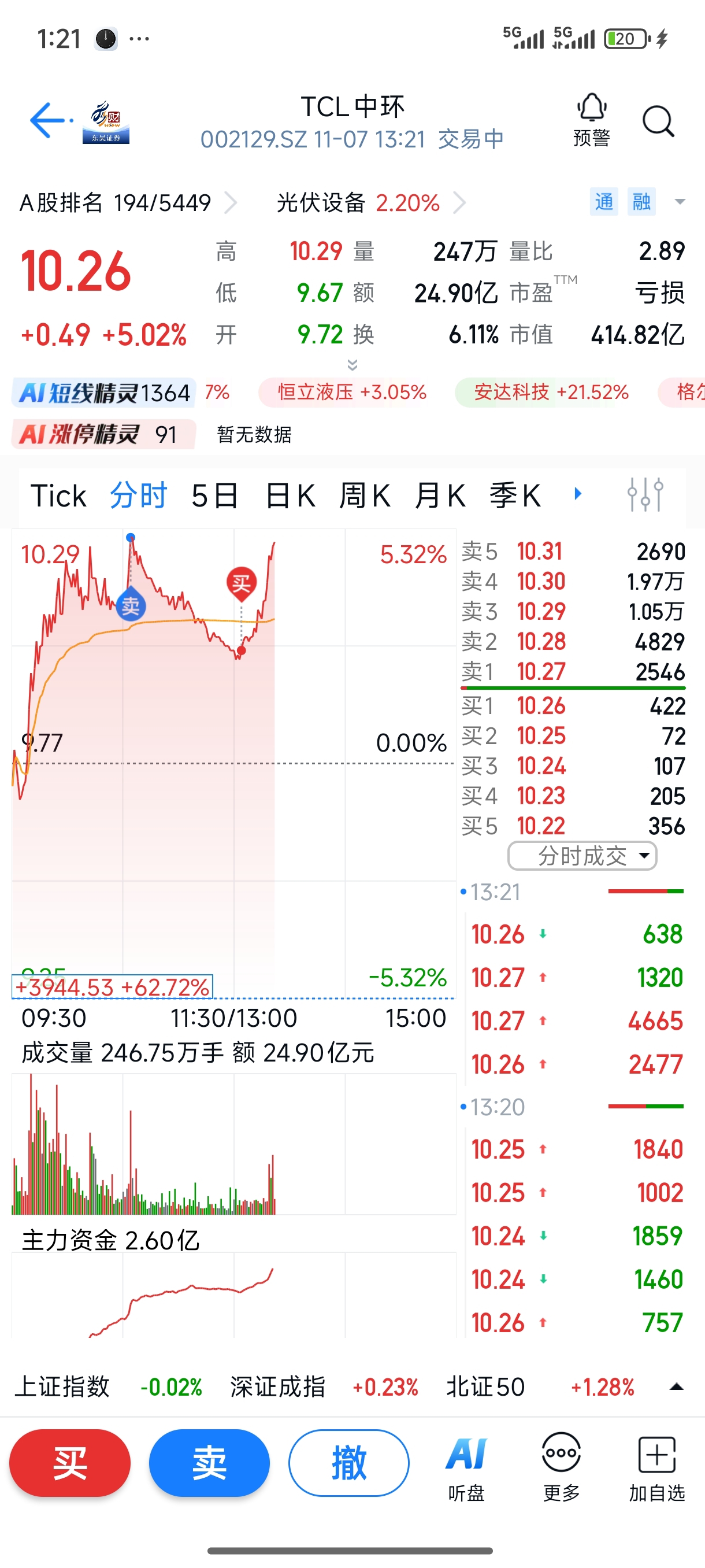 $TCL中环(SZ002129)$ 每日一T,成功接回
