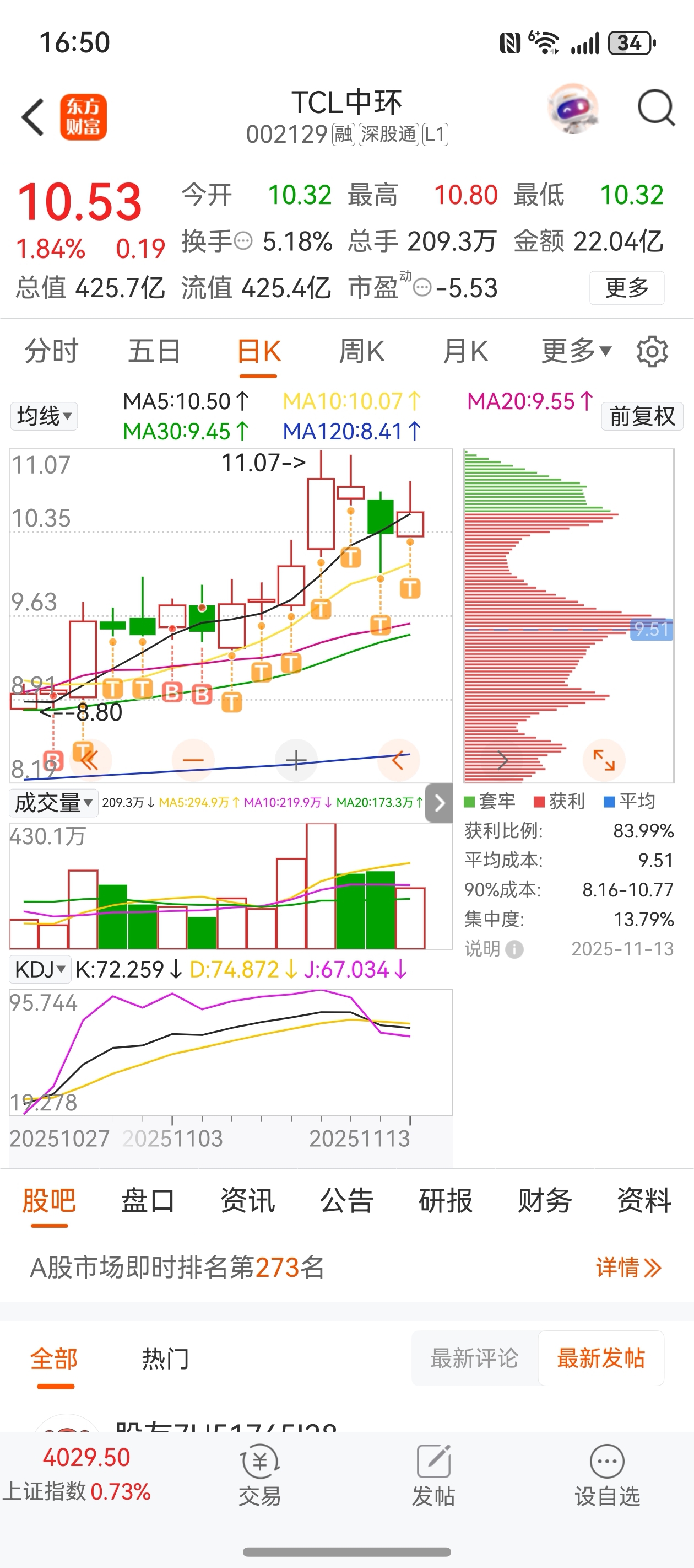 $TCL中环(SZ002129)$ 10到11区间震荡,超过10.5就慢慢减,低于10.5就慢慢加