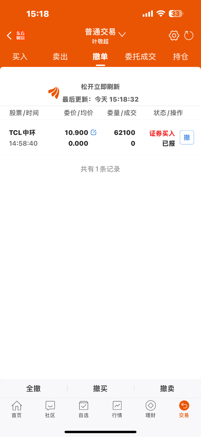 $TCL中环(SZ002129)$ 哪位大神知道收盘10.91元,我下单10.90元为什么不能成交???