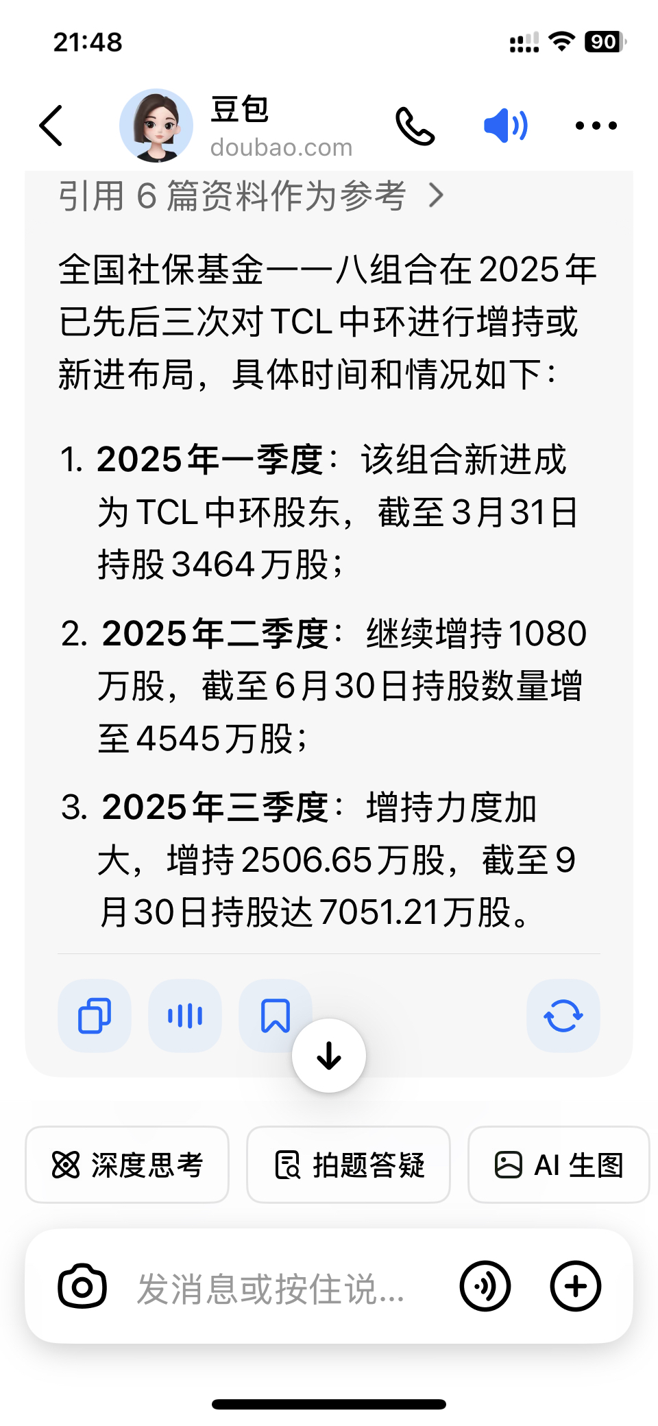 $TCL中环(SZ002129)$ 社保基金连续三个月增持。