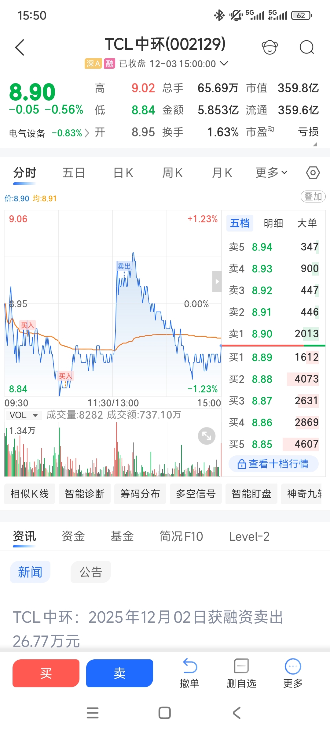 $TCL中环(SZ002129)$ 尾盘都懒得买,降本增效就对了!涨跌都开心