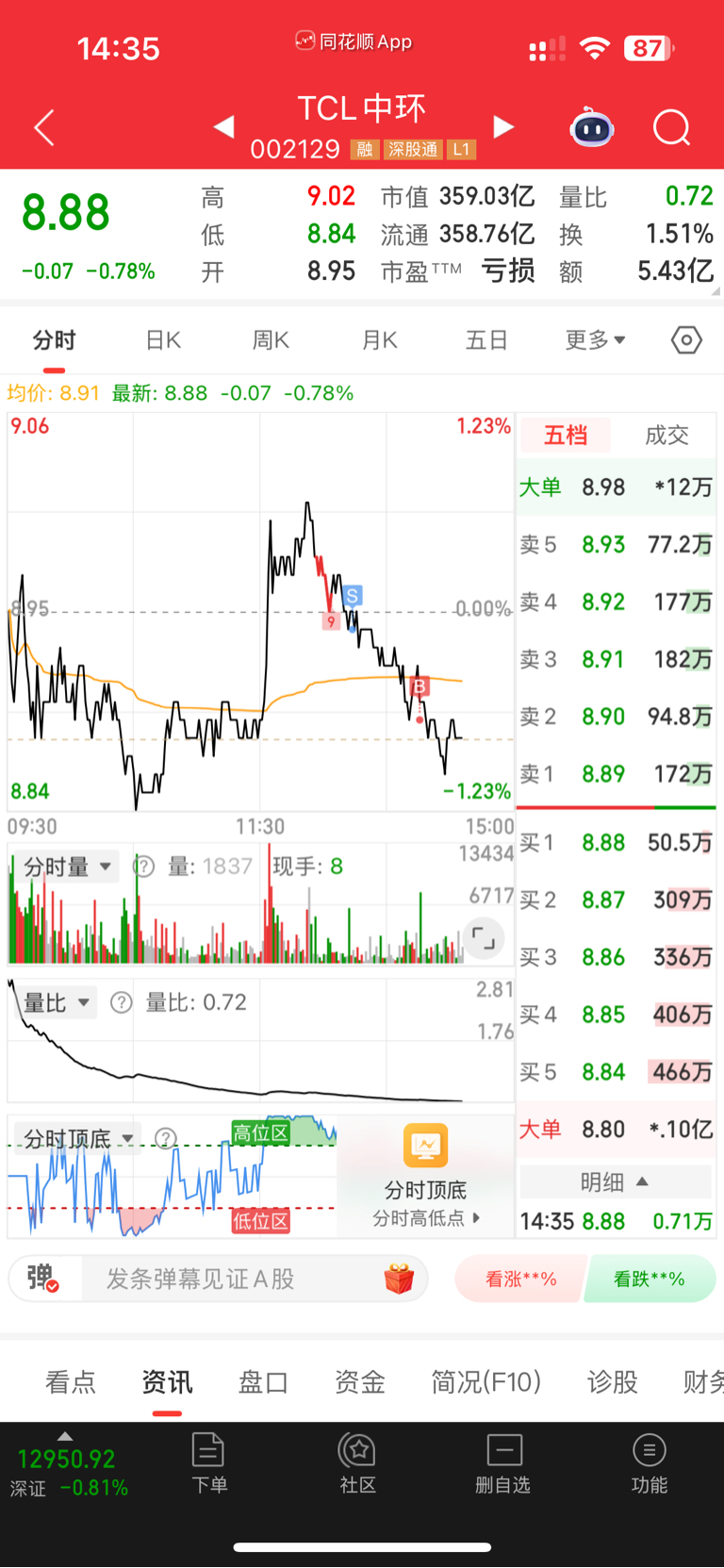 $TCL中环(SZ002129)$ 已经满仓了都不好做t了,前几天9.2补仓被埋了,拉到9.3,9.4让我t出来就好了,现在只能先s再b真怕t飞了就欲哭无泪了