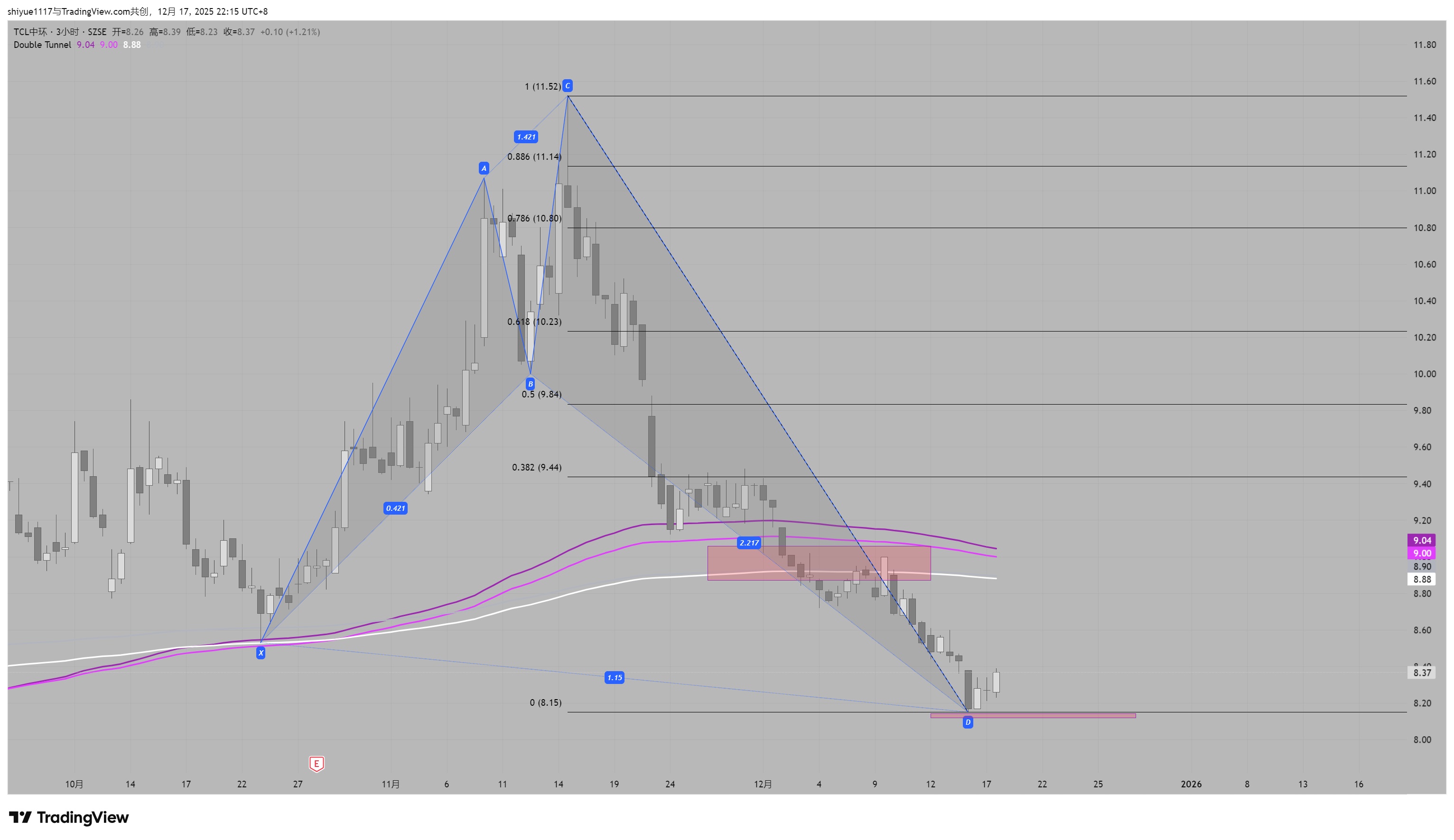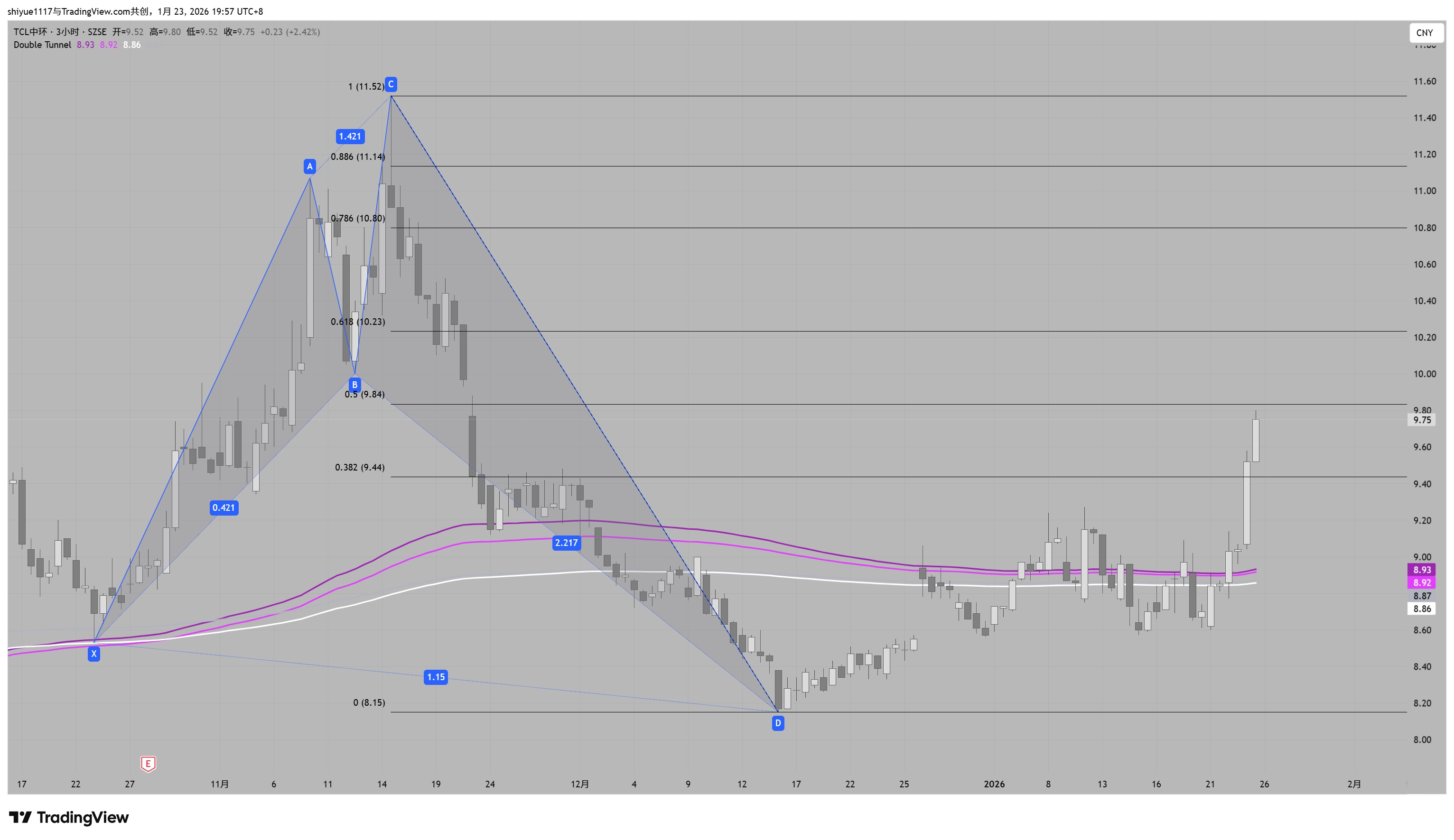 $TCL中环(SZ002129)$ 2h级别出现看涨形态,观察D点价格变化